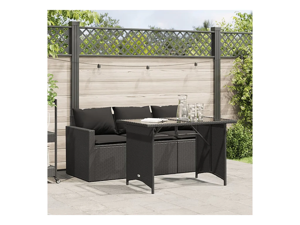Set da Pranzo da Giardino 2 pz con Cuscini Nero in Polyrattan