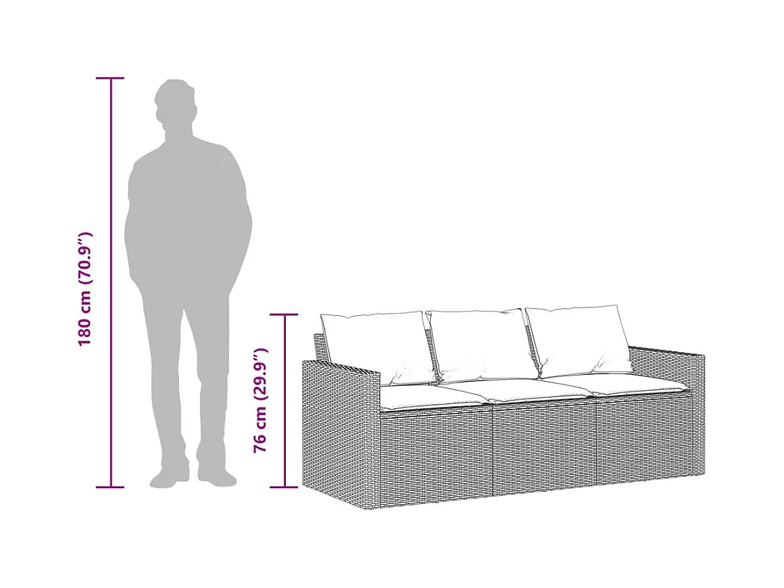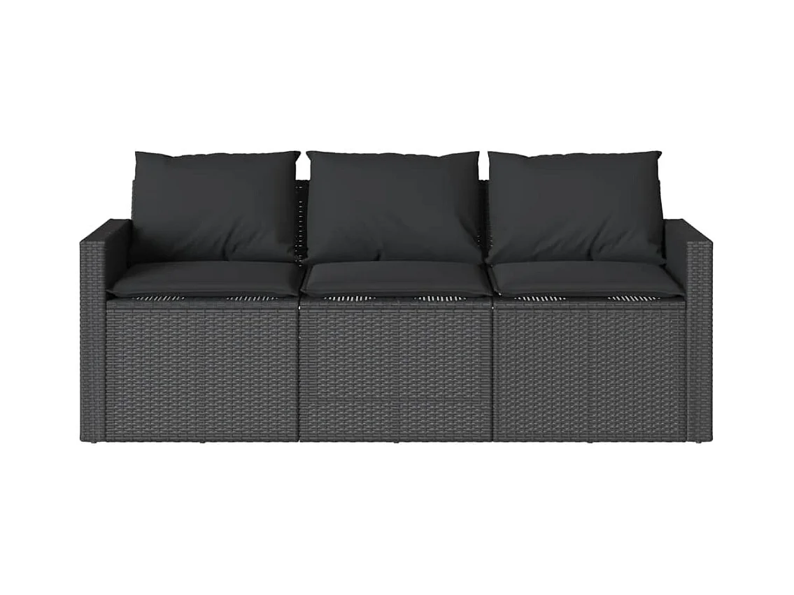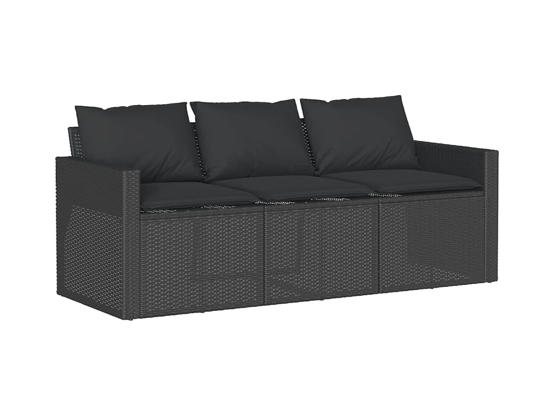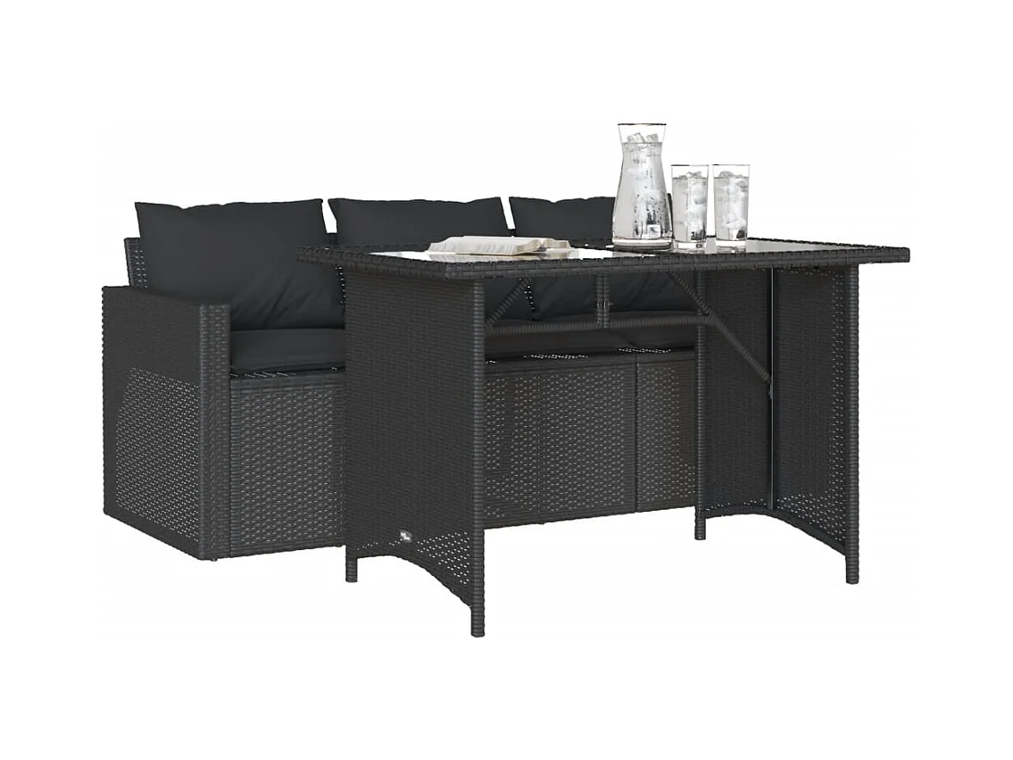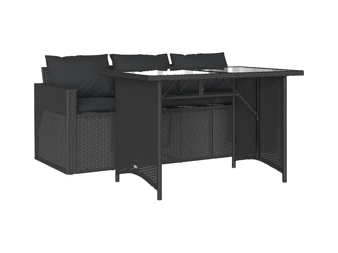 Set da Pranzo da Giardino 3 pz con Cuscini Nero in Polyrattan