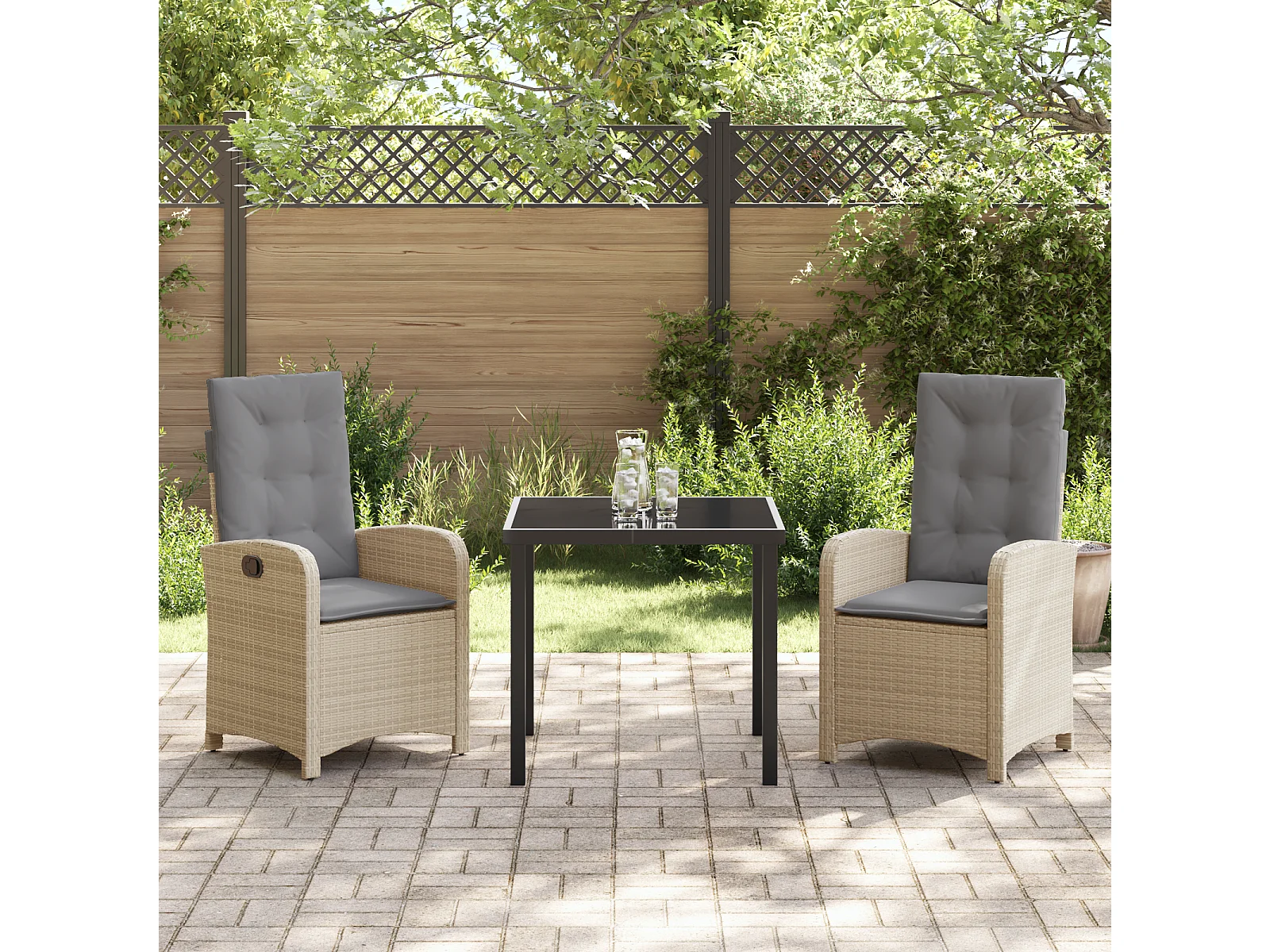 Set da pranzo da giardino composto da 3 pezzi con cuscini in polyrattan beige
