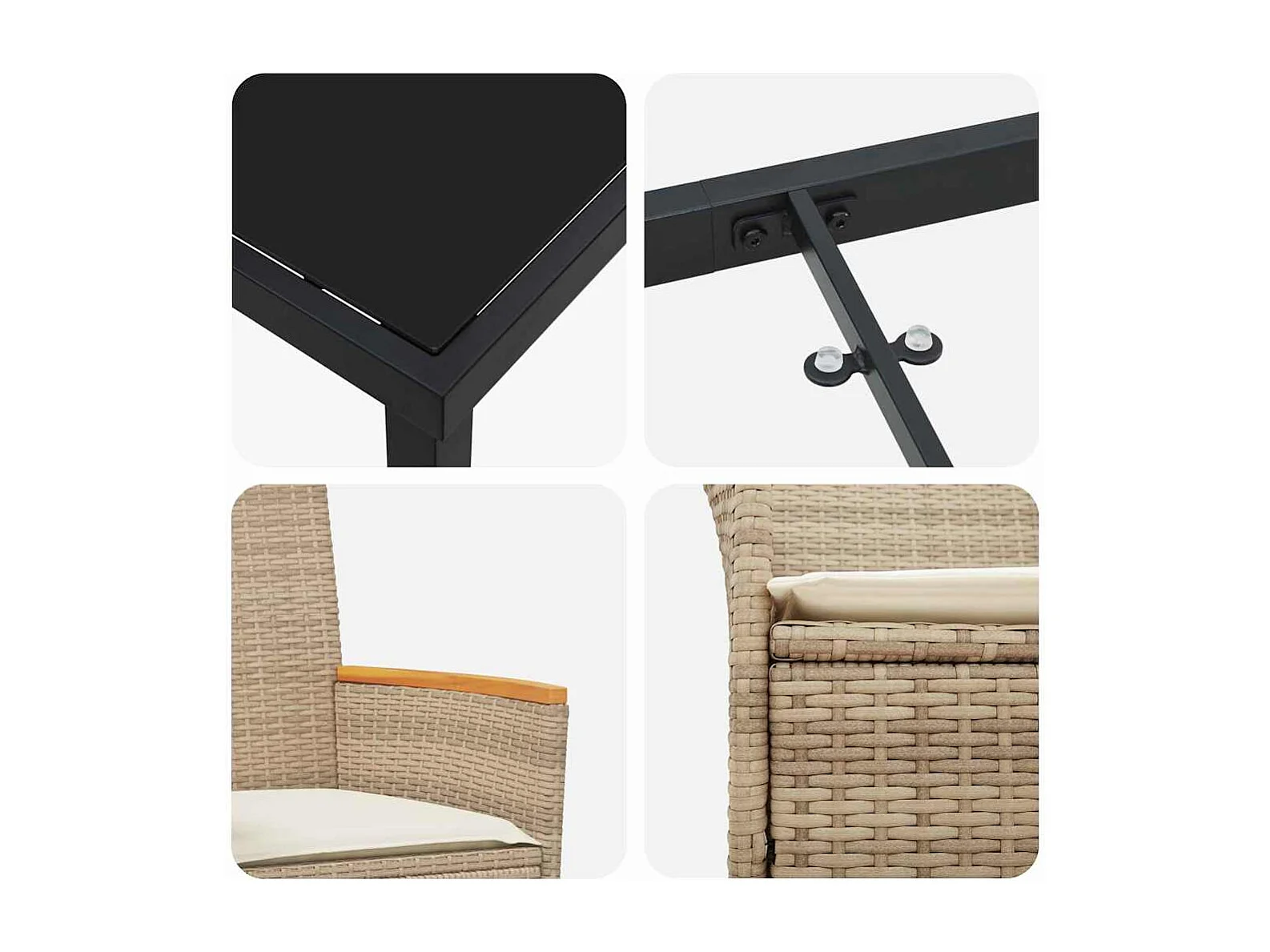 Set da pranzo da giardino composto da 3 pezzi con cuscini in polyrattan beige