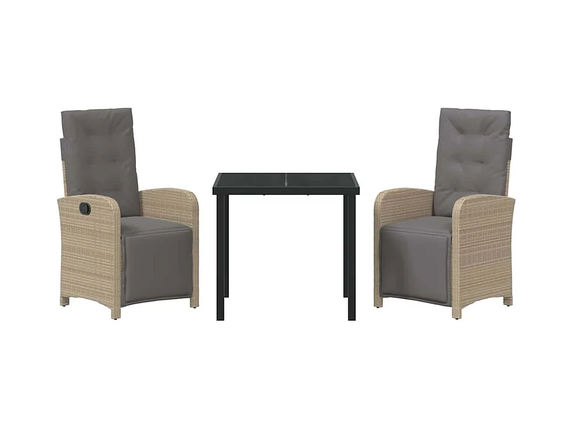 Set da pranzo da giardino composto da 3 pezzi con cuscini in polyrattan beige