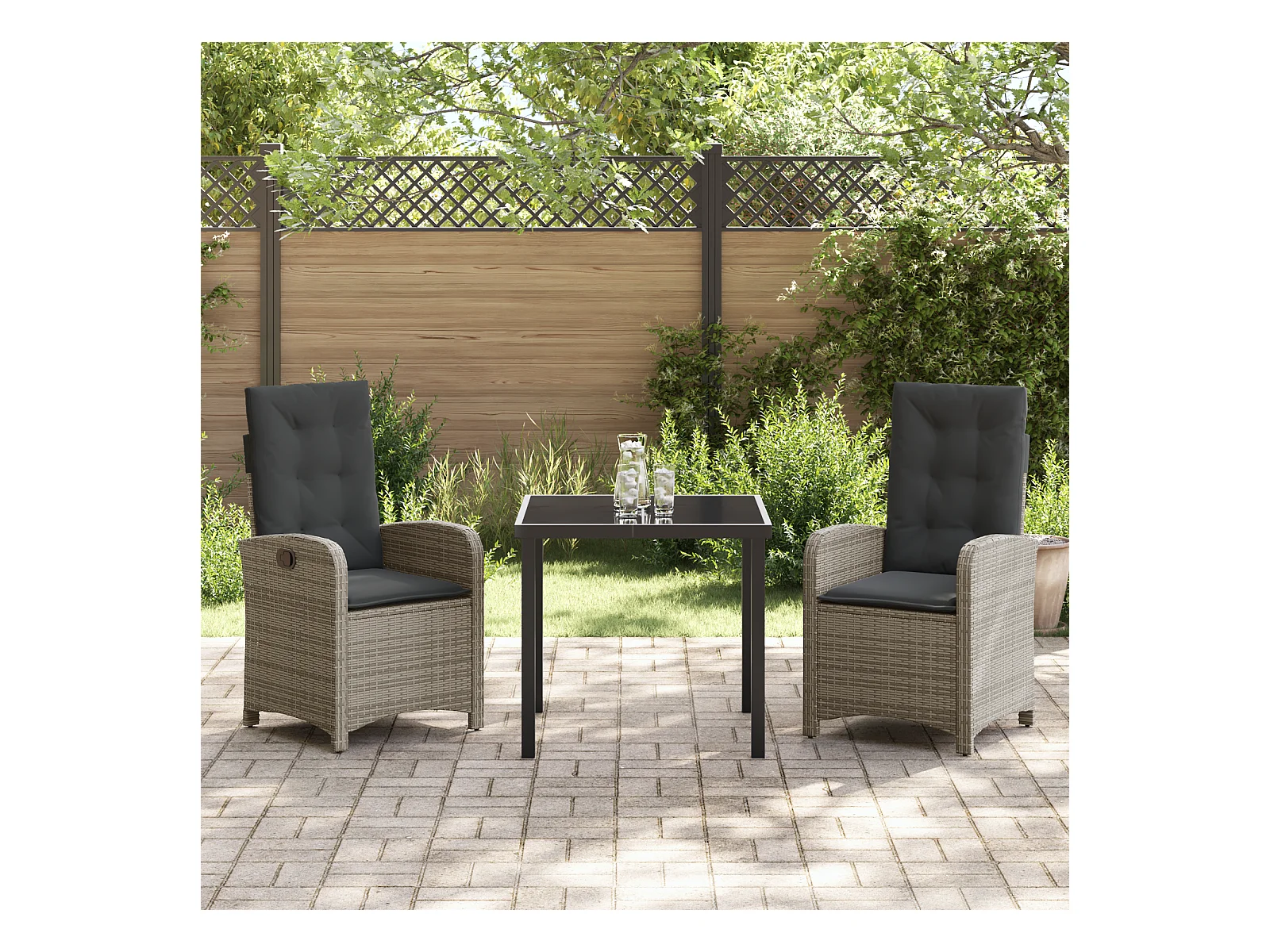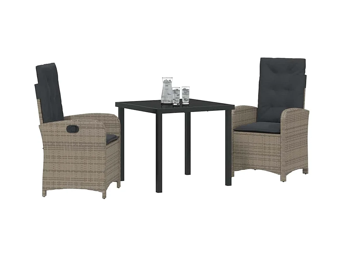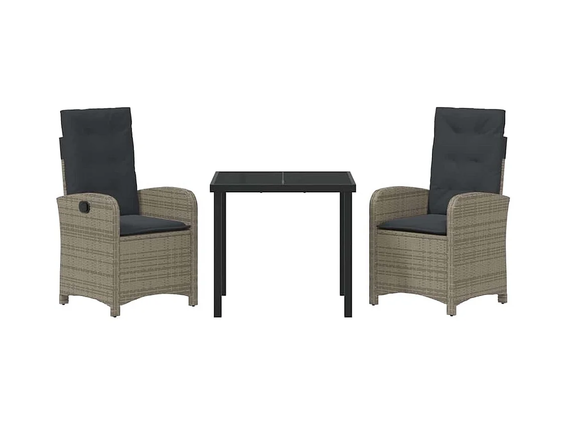 Set da pranzo da giardino 3 pezzi con cuscini in polyrattan grigio