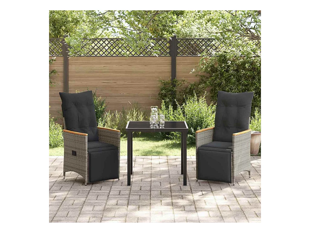 Set da pranzo da giardino 3 pezzi con cuscini in polyrattan grigio