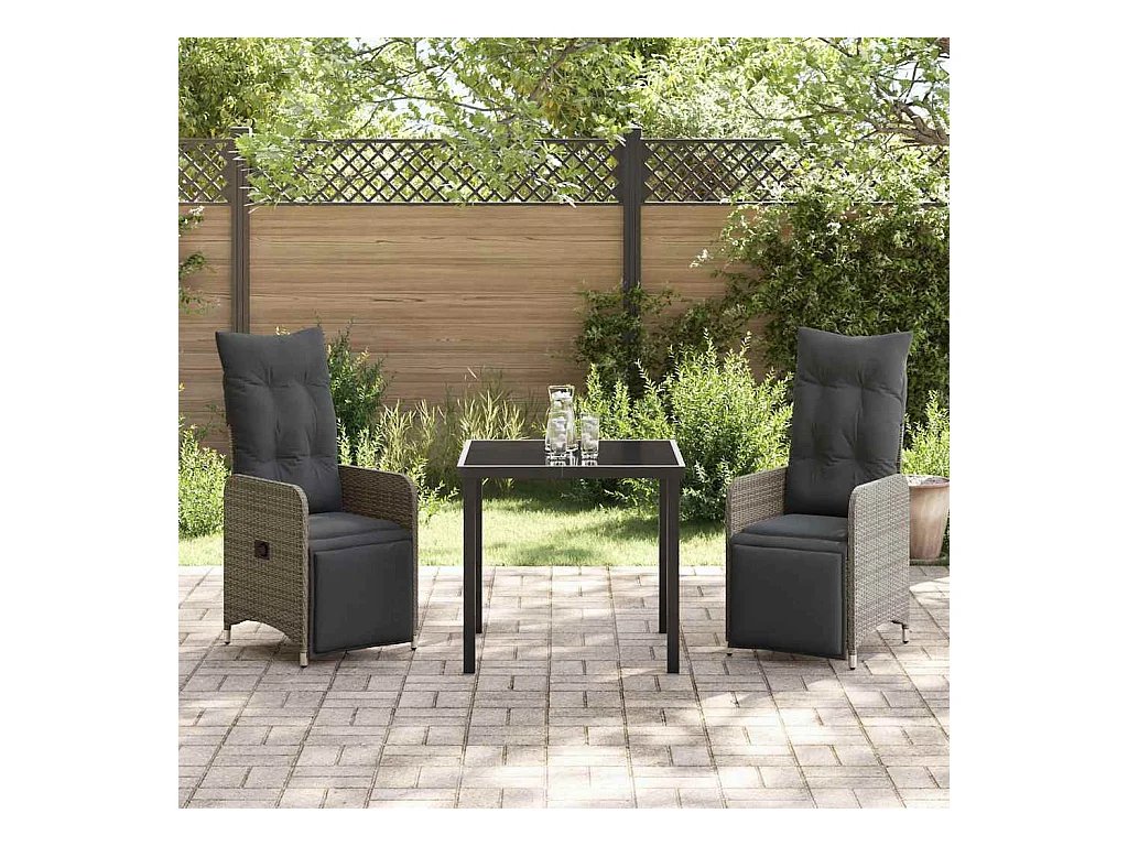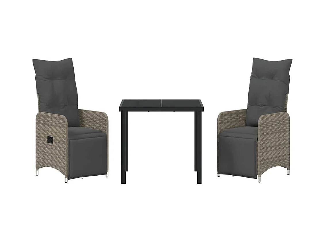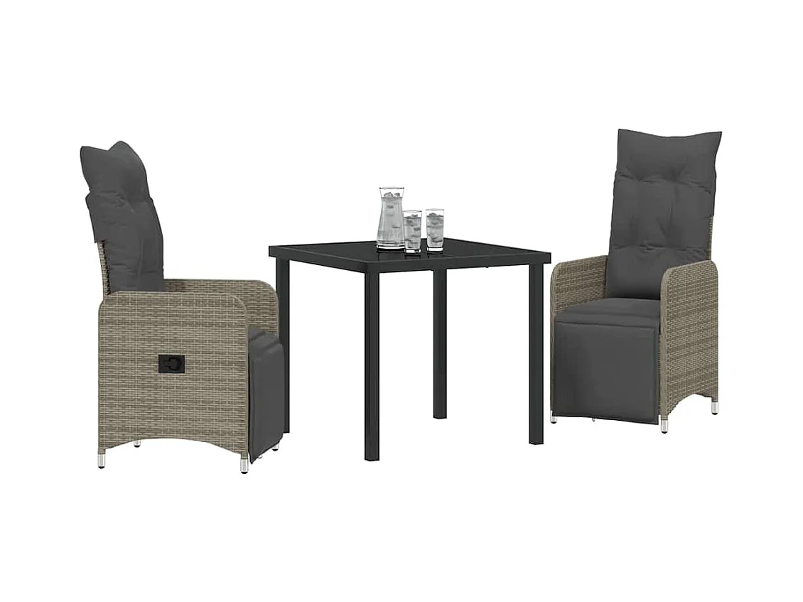 Set da pranzo da giardino 3 pezzi con cuscini in polyrattan grigio
