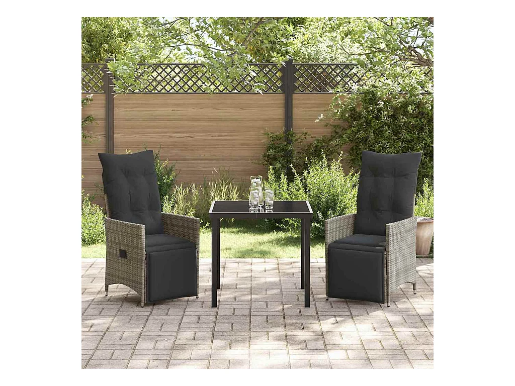 Set da pranzo da giardino 3 pezzi con cuscini in polyrattan grigio