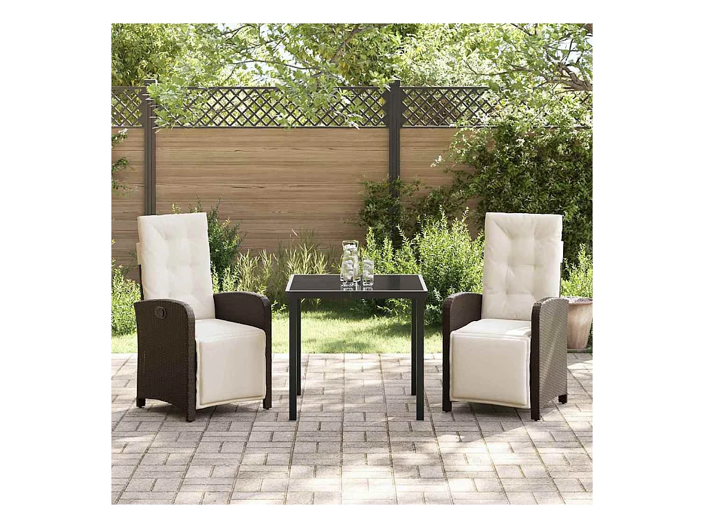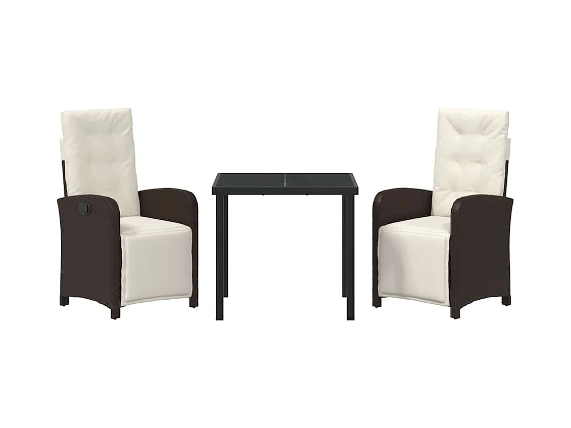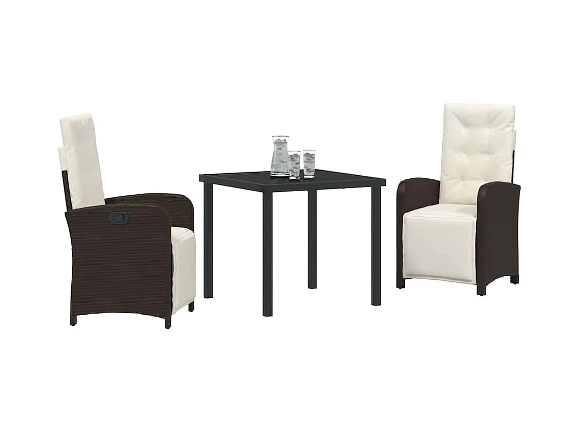 Set da pranzo da giardino 3 pezzi con cuscini in polyrattan marrone