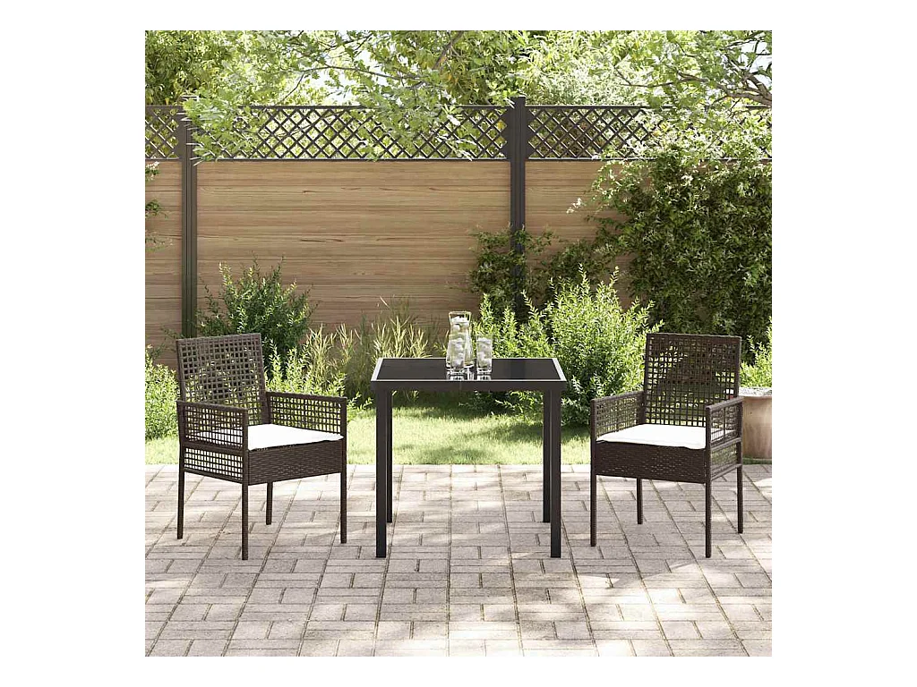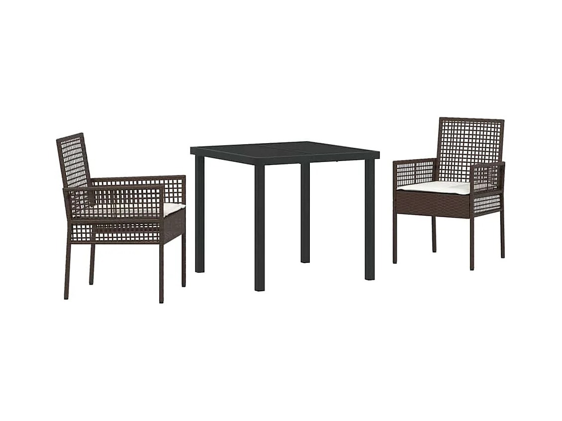 Set da pranzo da giardino 3 pezzi con cuscini in polyrattan marrone