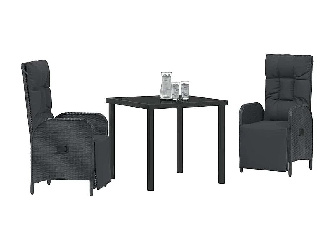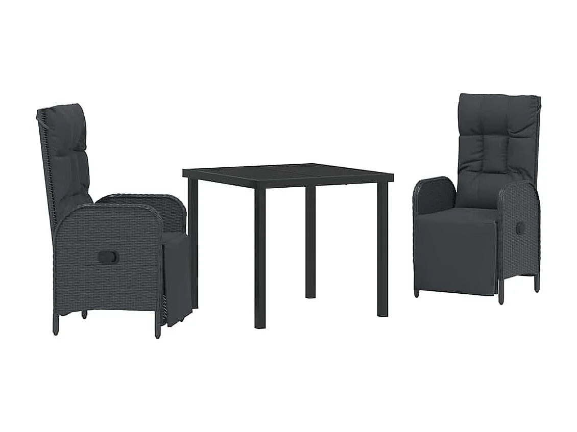 Set da pranzo da giardino in polyrattan nero, 3 pezzi
