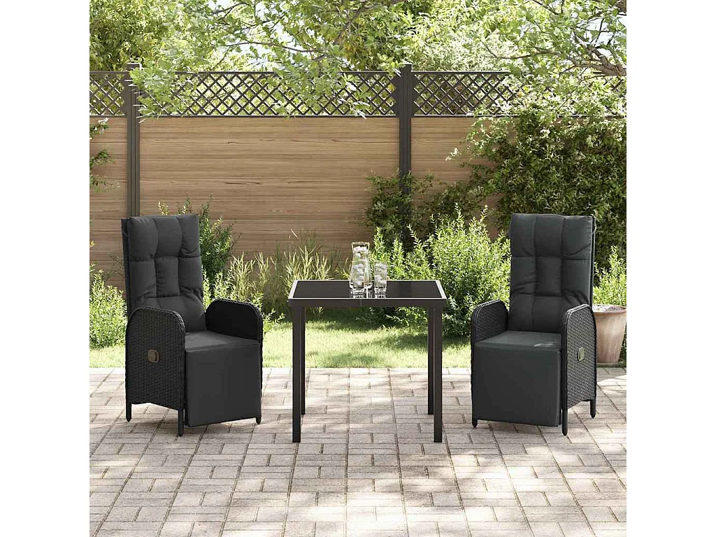 Set da pranzo da giardino 3 pezzi con cuscini in rattan sintetico nero