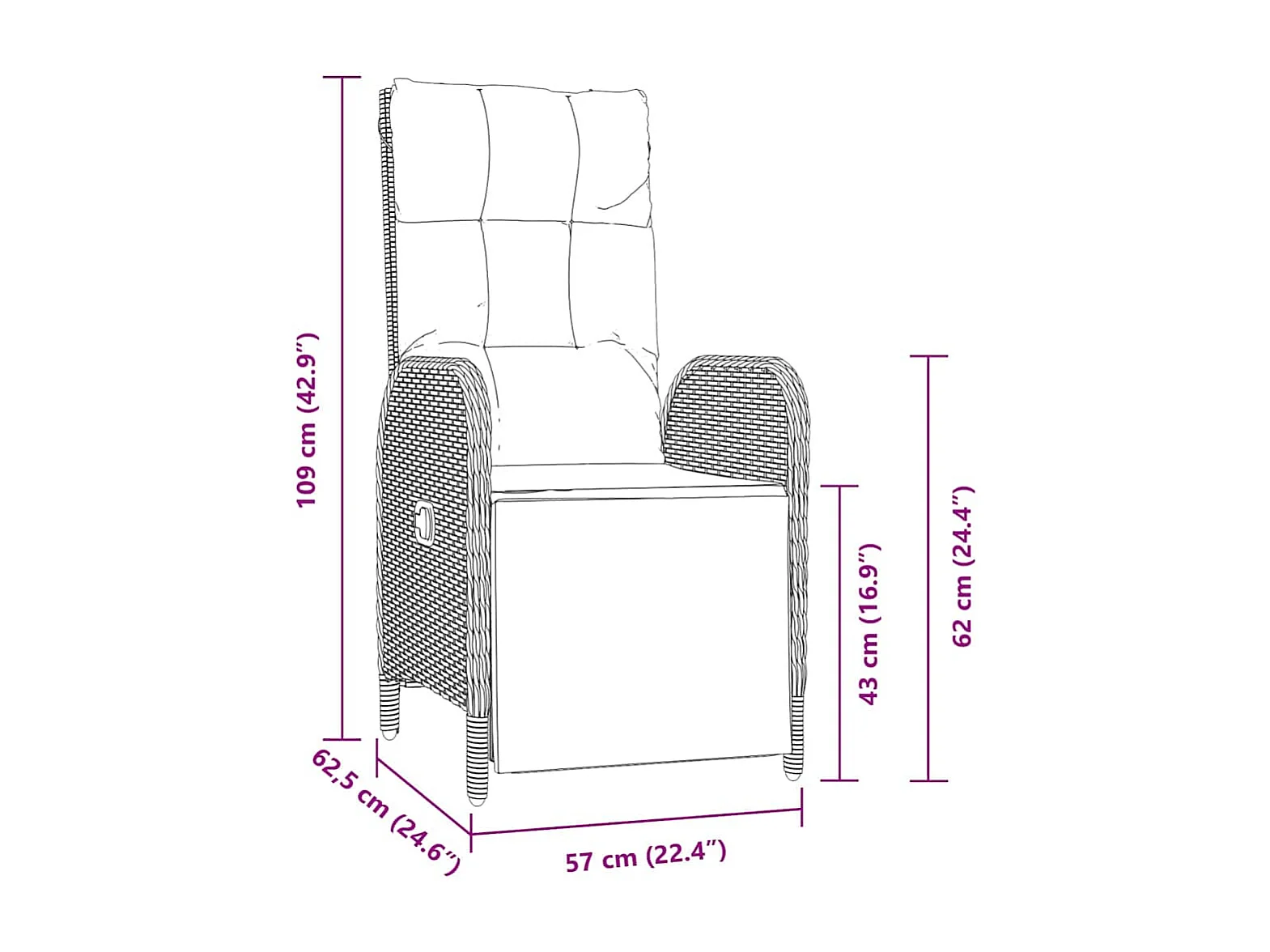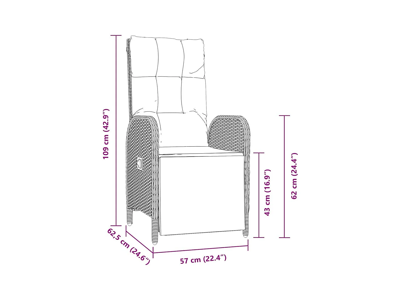 Set da pranzo da giardino 3 pezzi con cuscini in polyrattan marrone