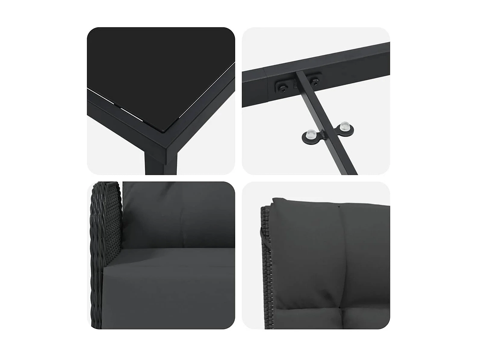 Set da giardino 3 pezzi con cuscini in polyrattan nero
