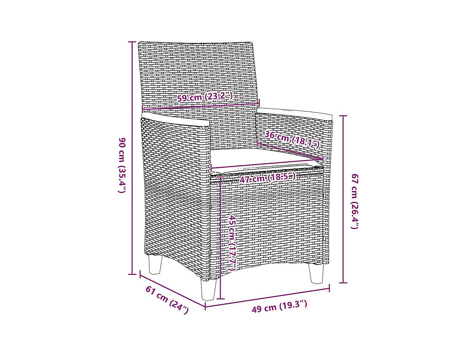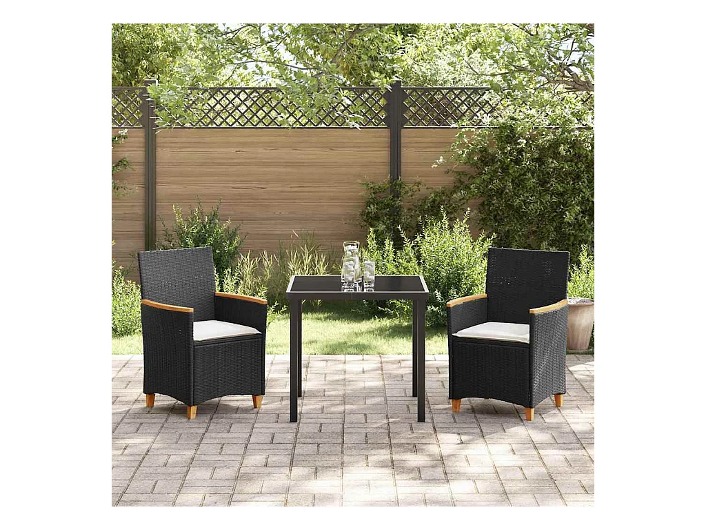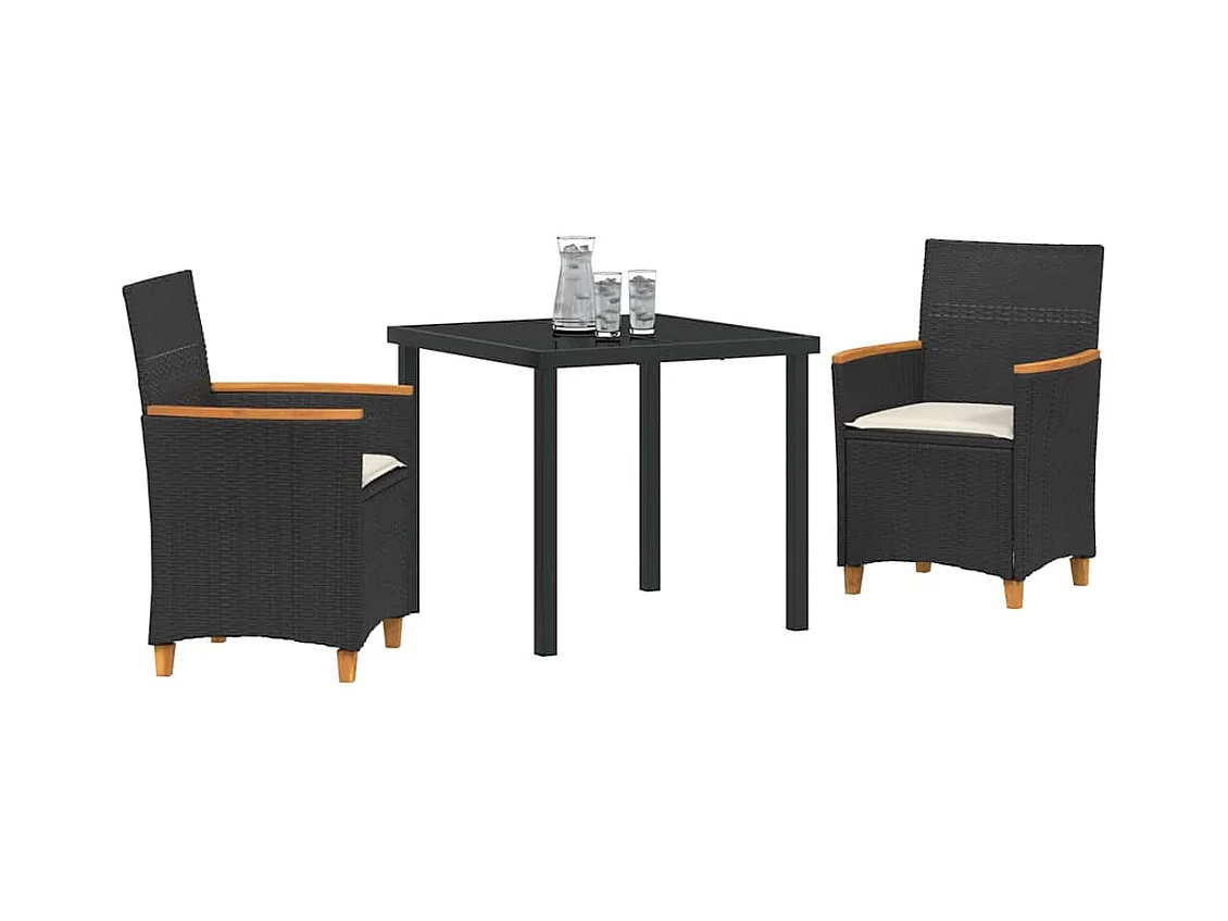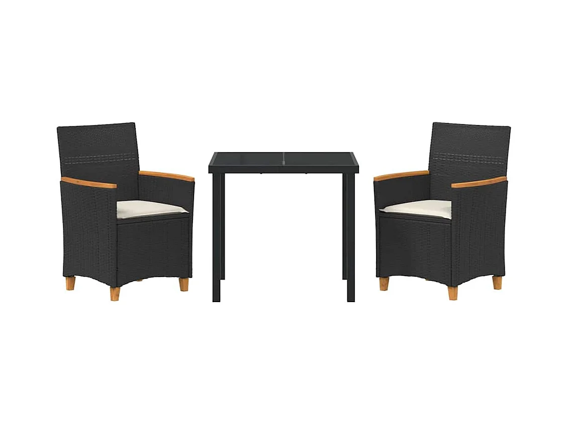 Set da pranzo da giardino 3 pezzi con cuscini in polyrattan nero