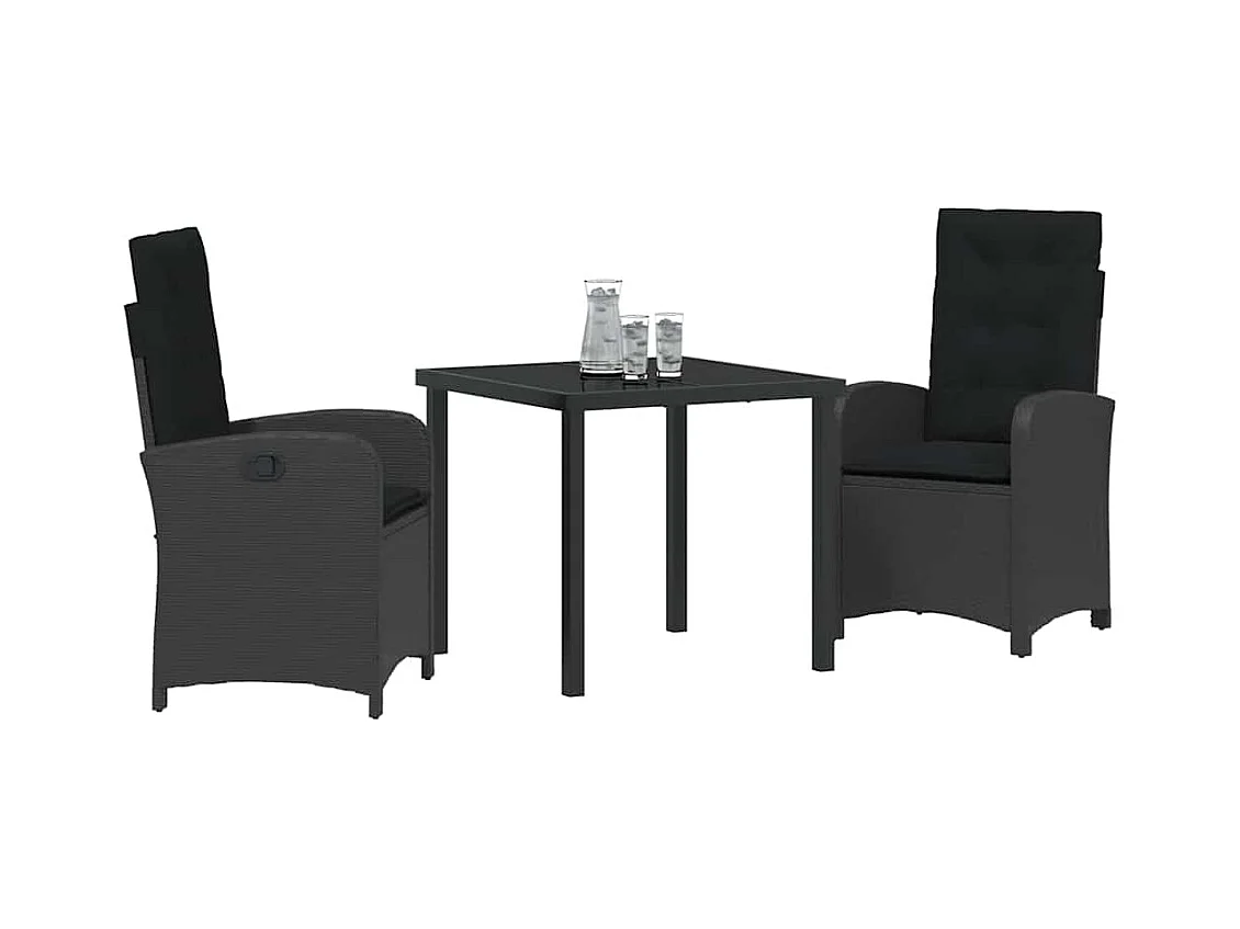 Set da pranzo da giardino 3 pezzi con cuscini in polyrattan nero