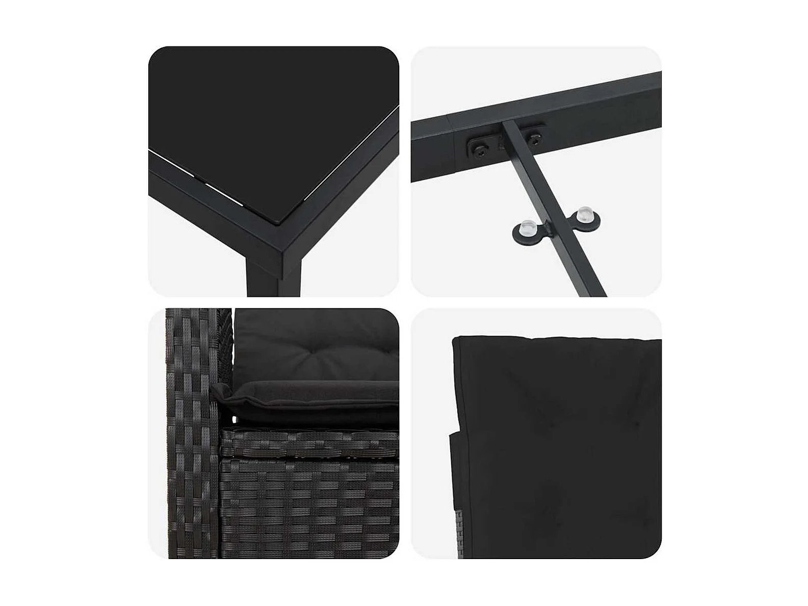 Set da giardino 3 pezzi con cuscini in polyrattan nero