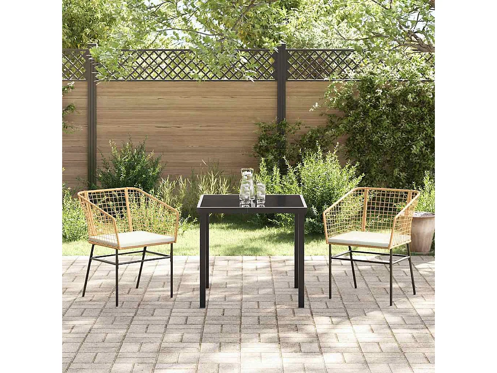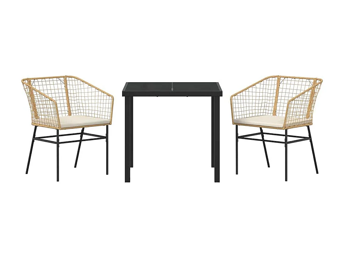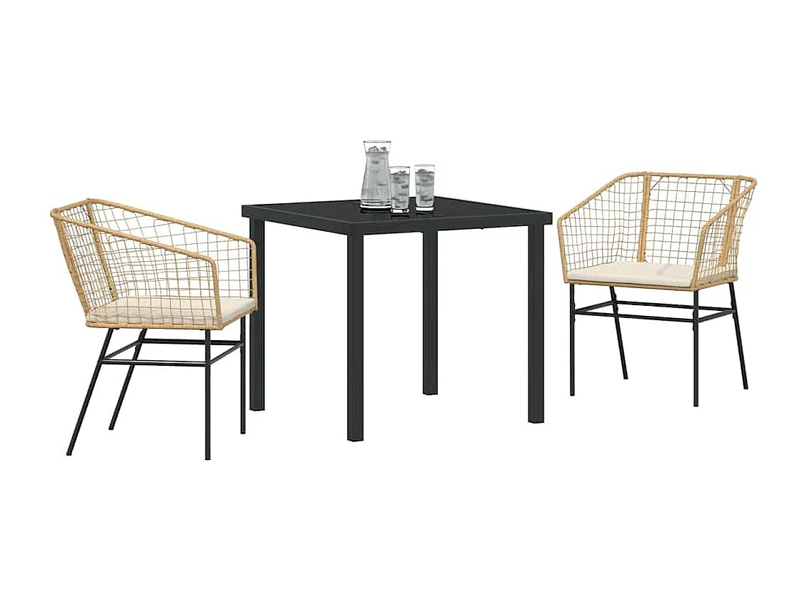 Set da pranzo da giardino 3 pezzi con cuscini marroni in rattan sintetico