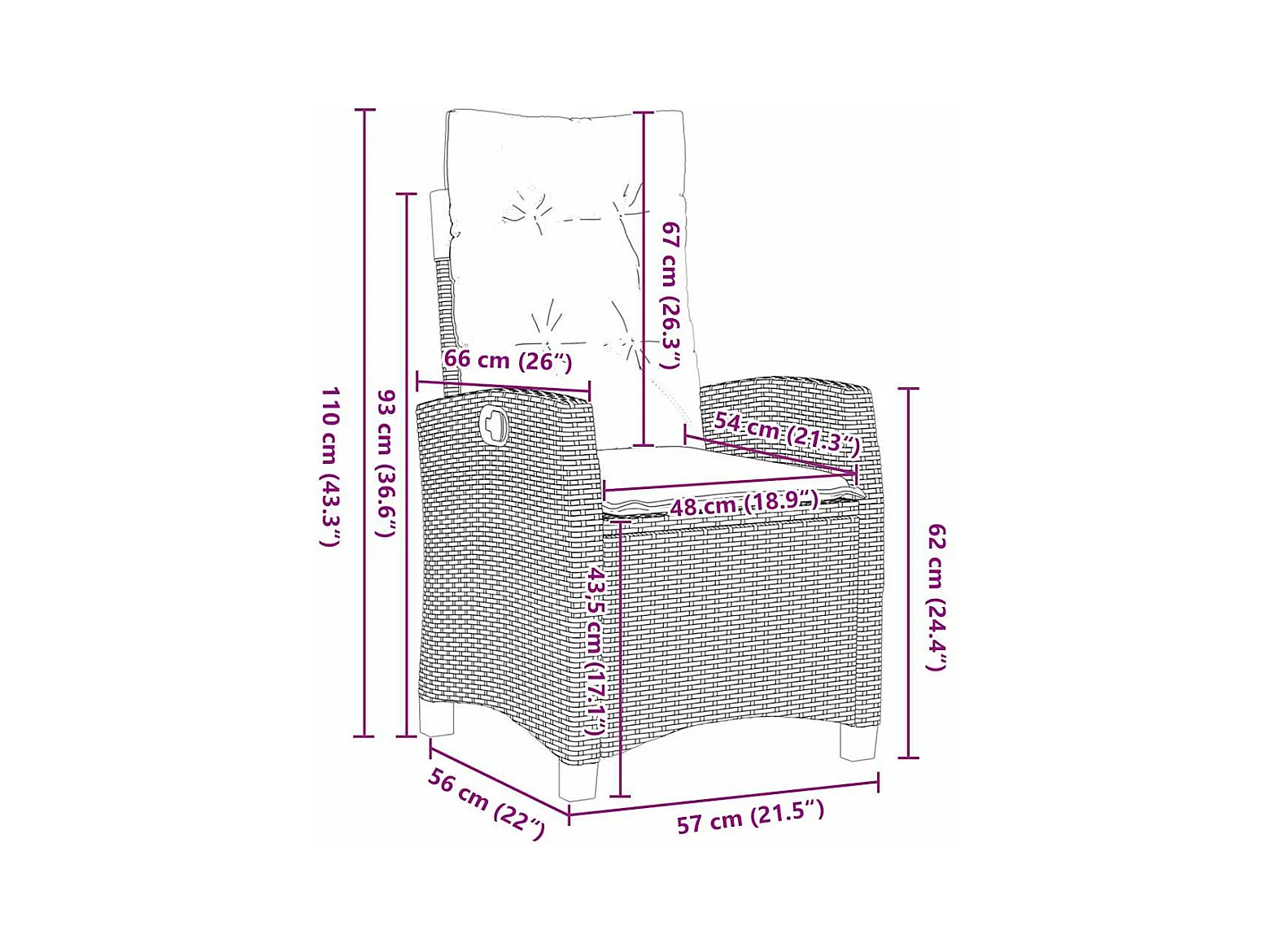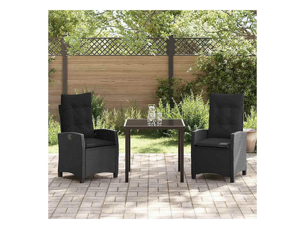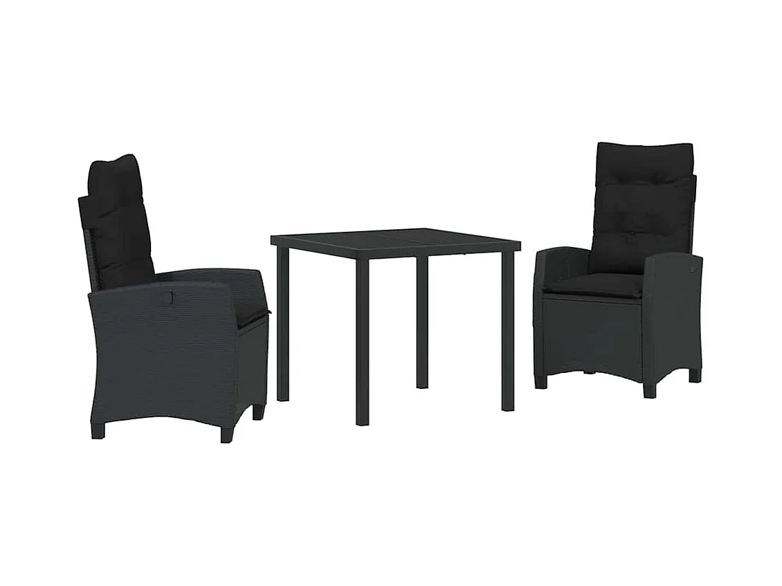 Set da pranzo da giardino 3 pezzi con cuscini - Rattan nero