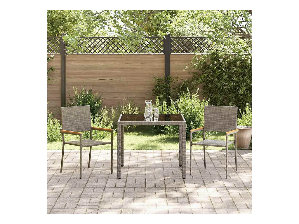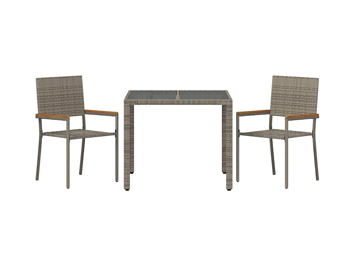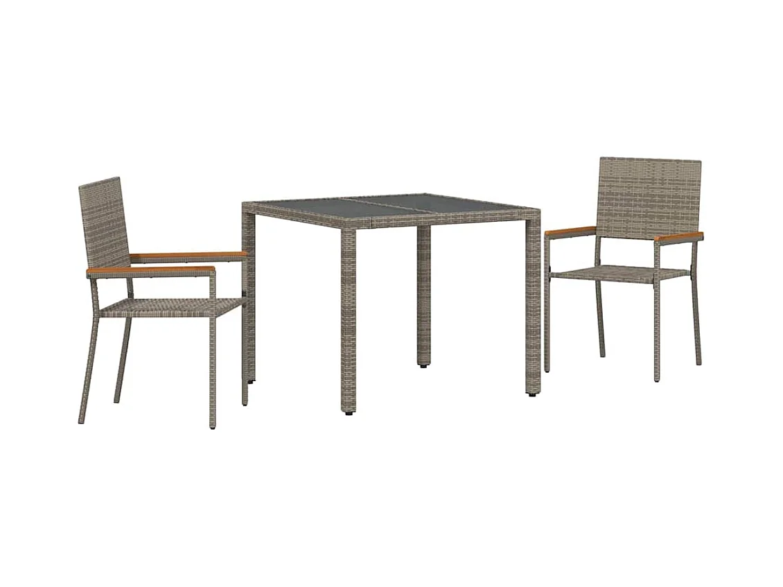 Set da pranzo da giardino 3 pezzi, grigio, marrone