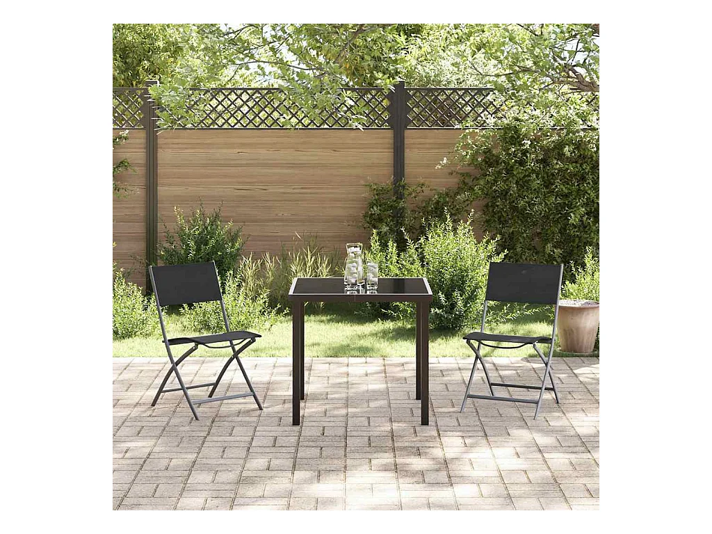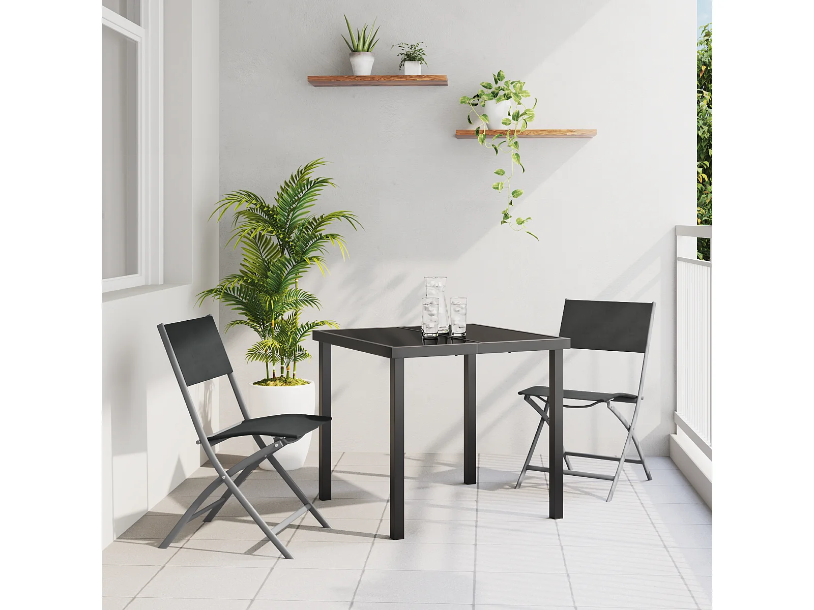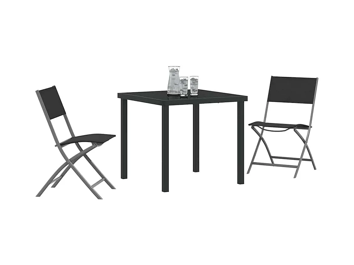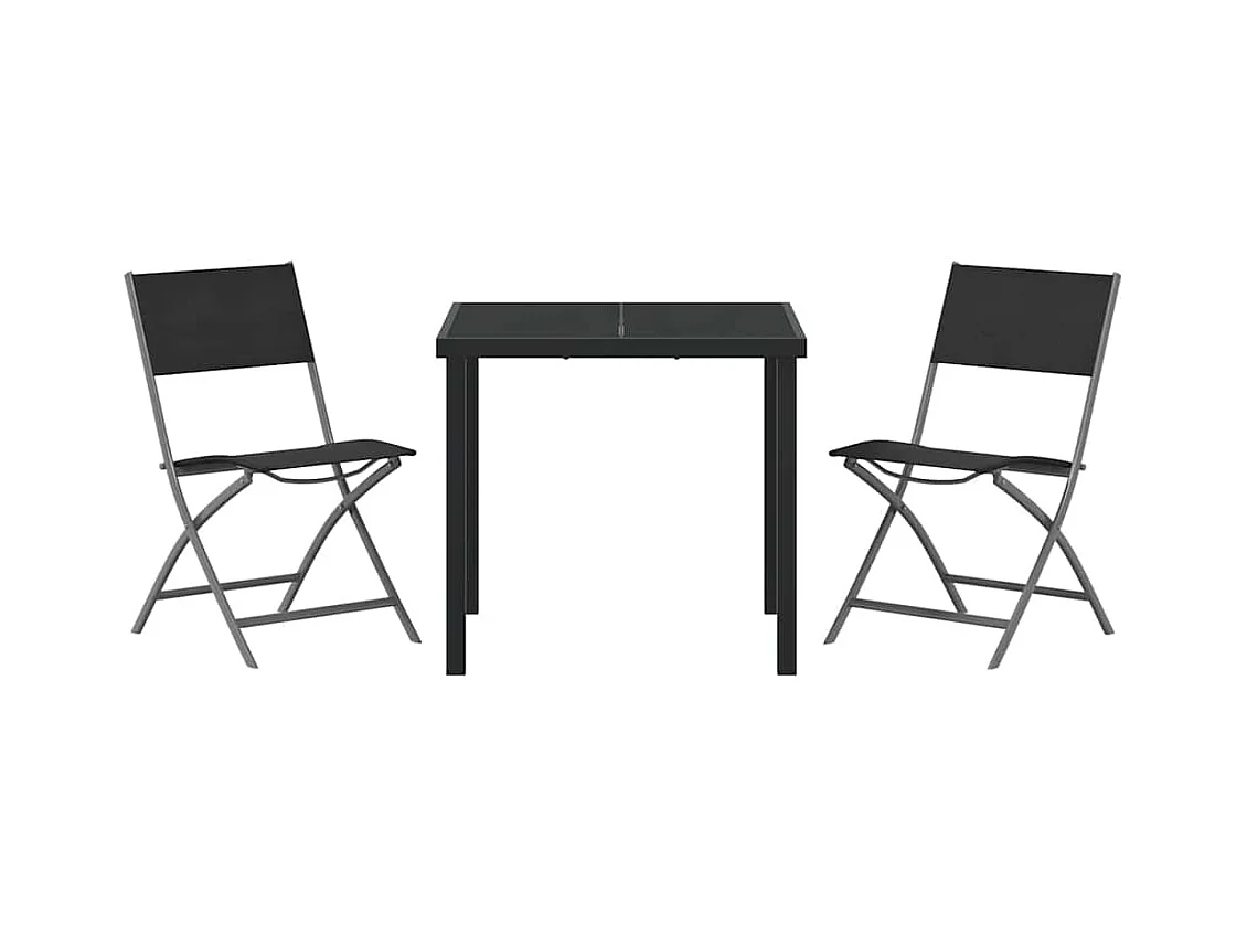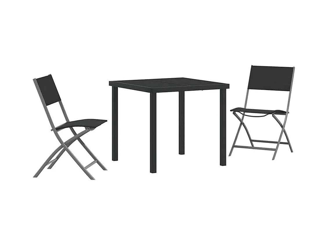 Set da pranzo da giardino 3 pezzi in textilene nero e acciaio