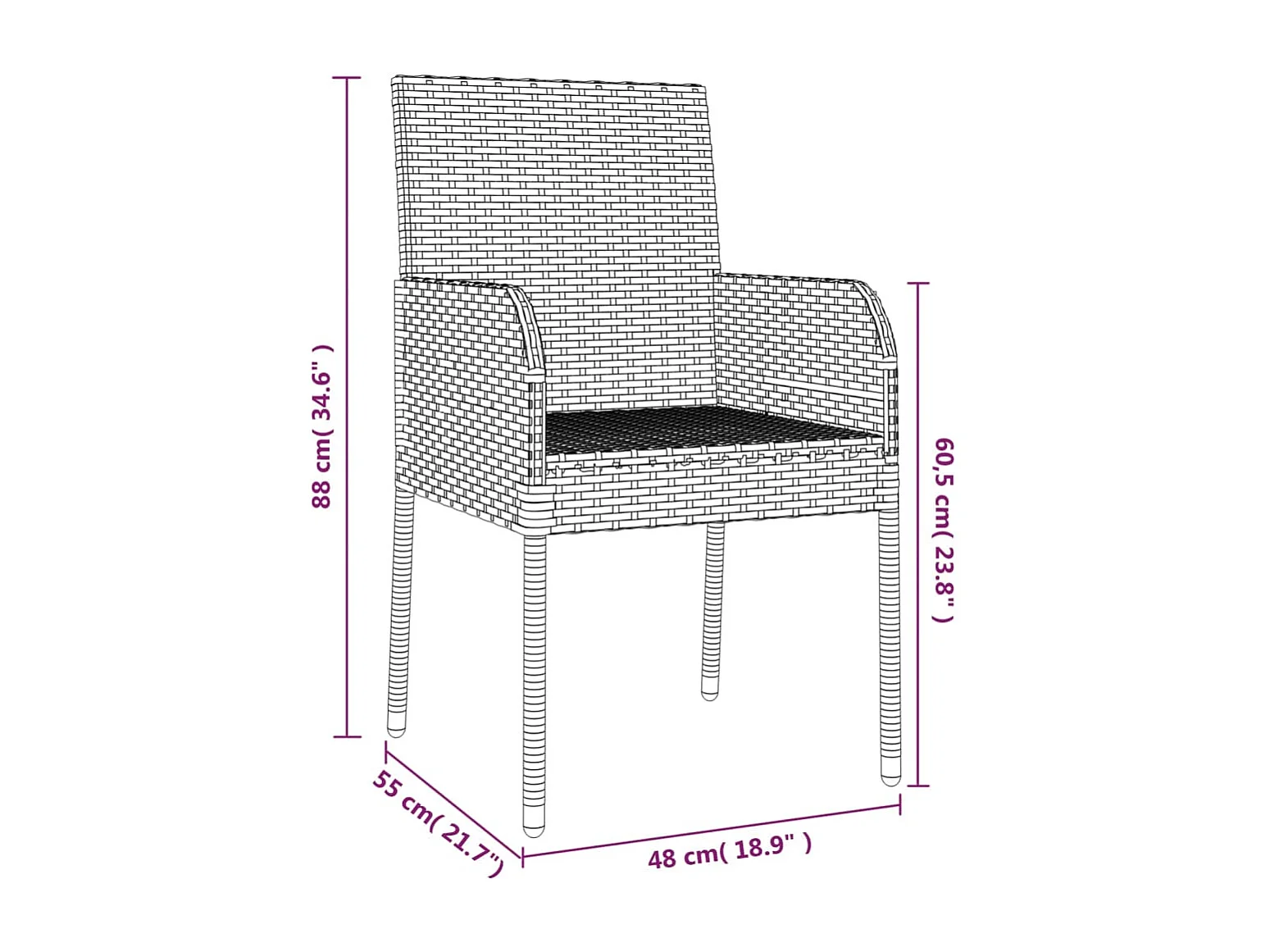 Set da Pranzo da Giardino 3 pz con Cuscini in Polyrattan Grigio