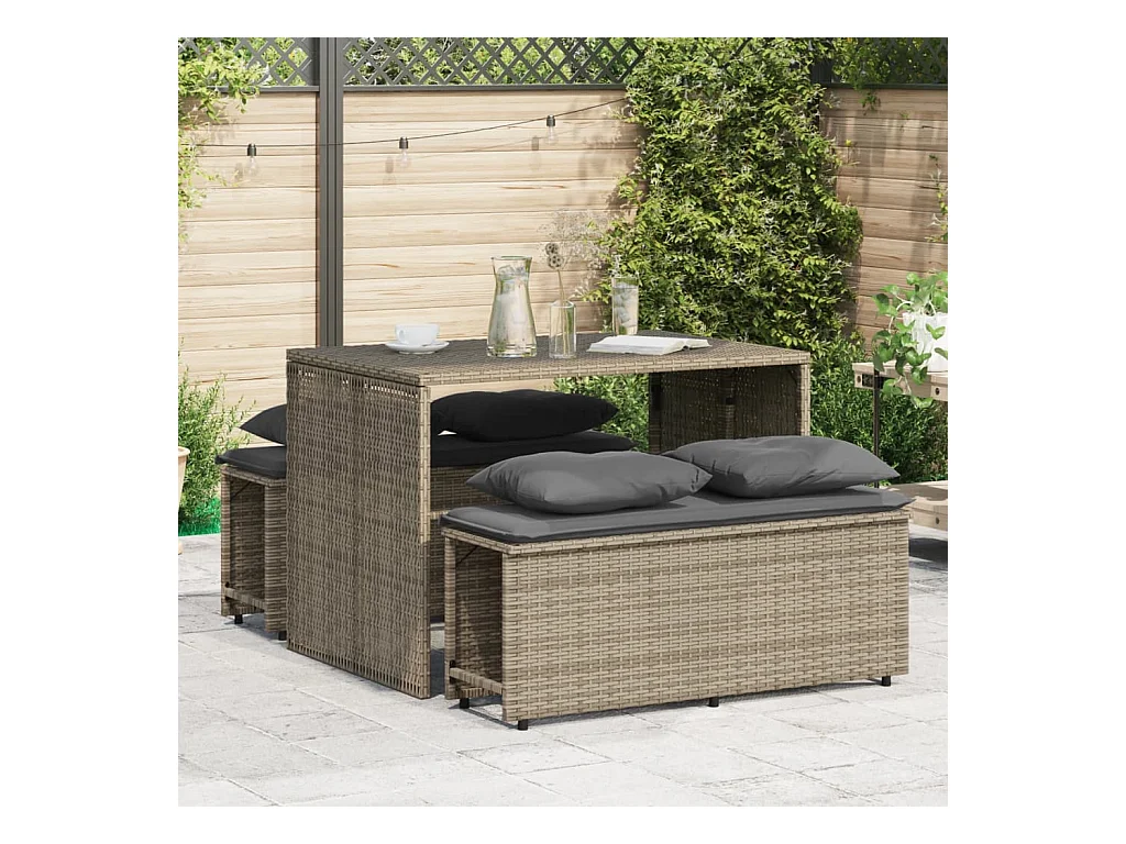 Set Pranzo da Giardino 5 pz con Cuscini Beige Misto Polyrattan