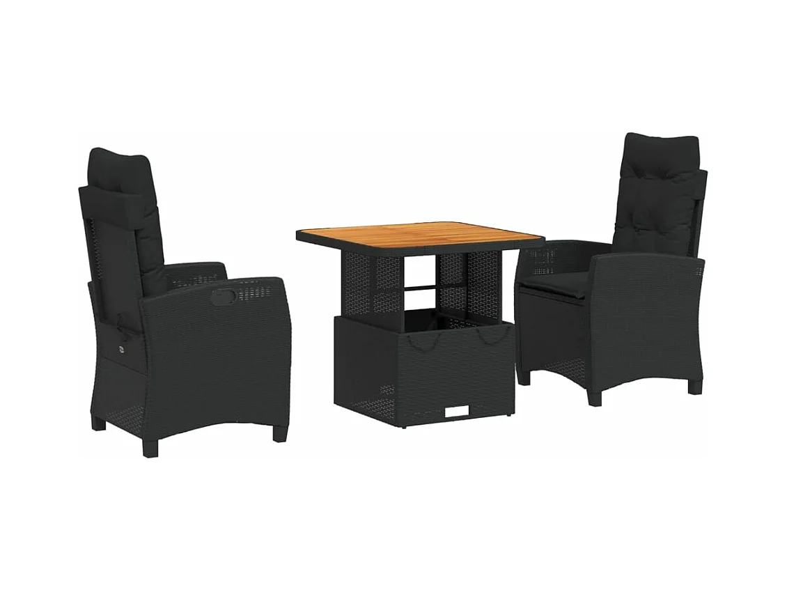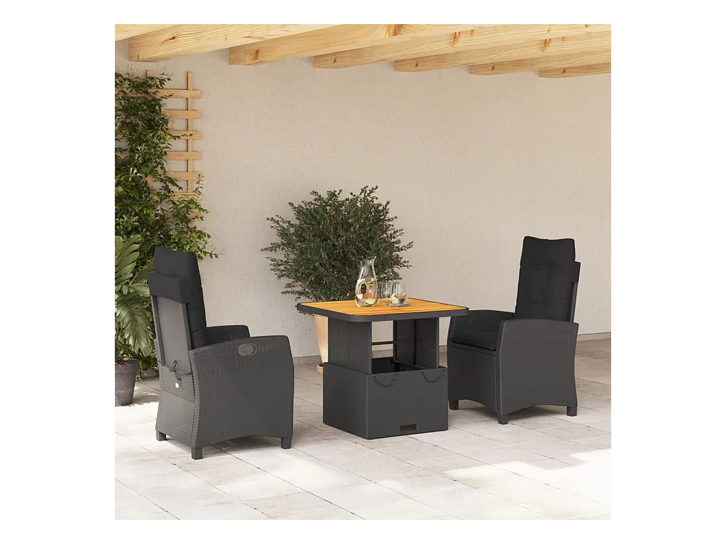 Set da Pranzo da Giardino 3 pz con Cuscini Nero in Polyrattan