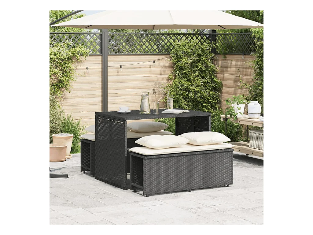 Set da Pranzo da Giardino 5 pz Nero con Cuscini in Polyrattan