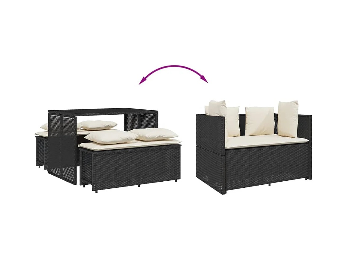 Set da Pranzo da Giardino 9 pz con Cuscini Nero in Polyrattan