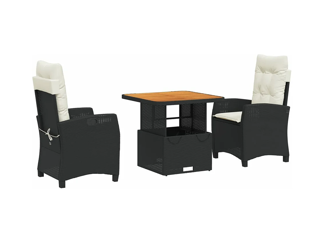 Set da Pranzo da Giardino 3 pz con Cuscini Nero in Polyrattan