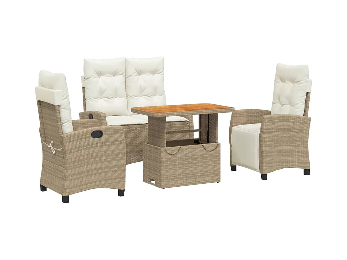 Set da Pranzo da Giardino 4 pz con Cuscini Beige in Polyrattan