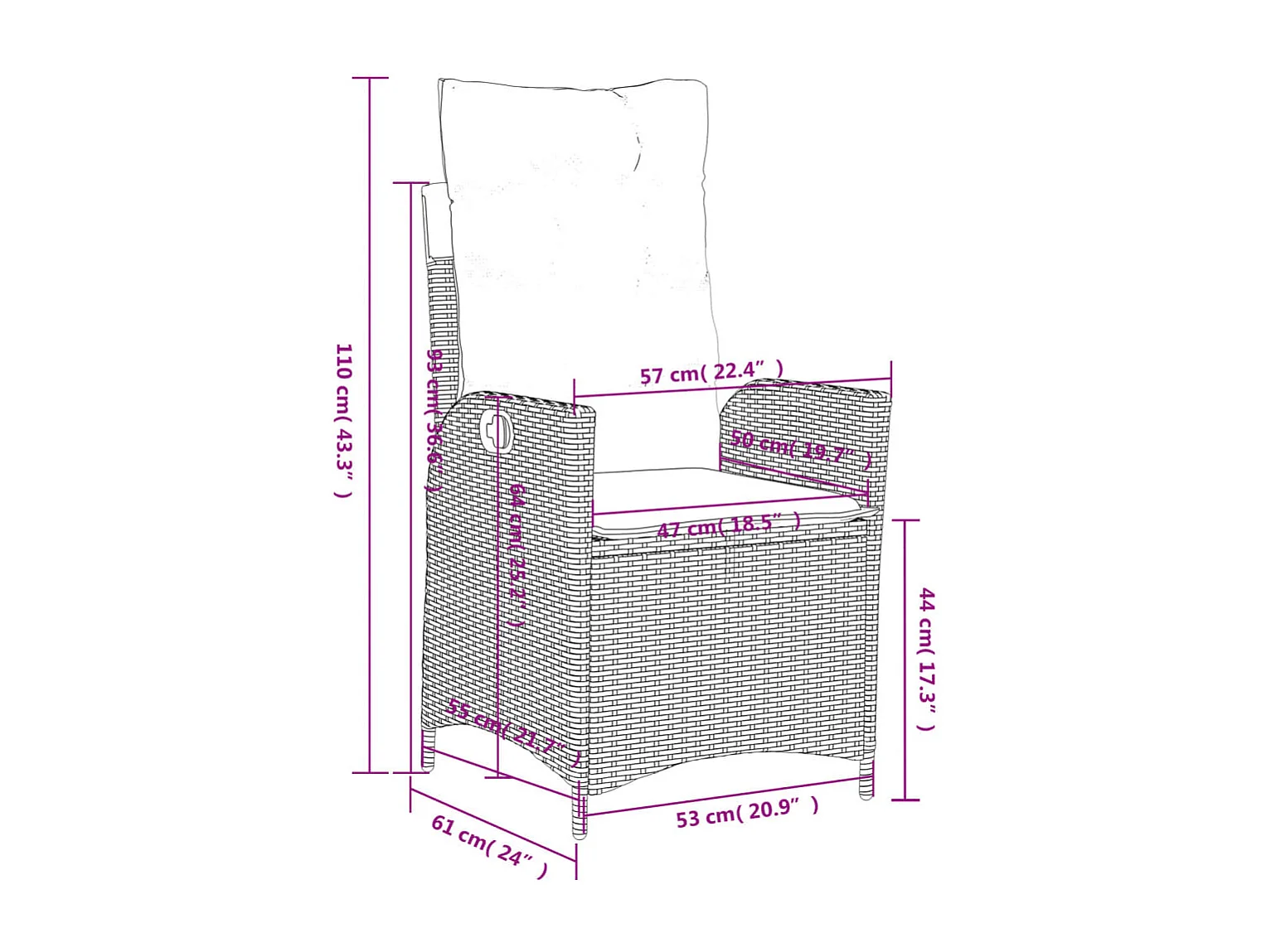 Set da Pranzo da Giardino 4 pz con Cuscini Nero in Polyrattan