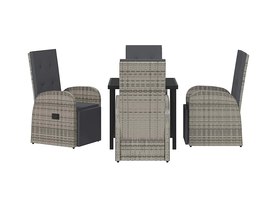 Set da pranzo da giardino 5 pezzi con cuscini grigi in polyrattan