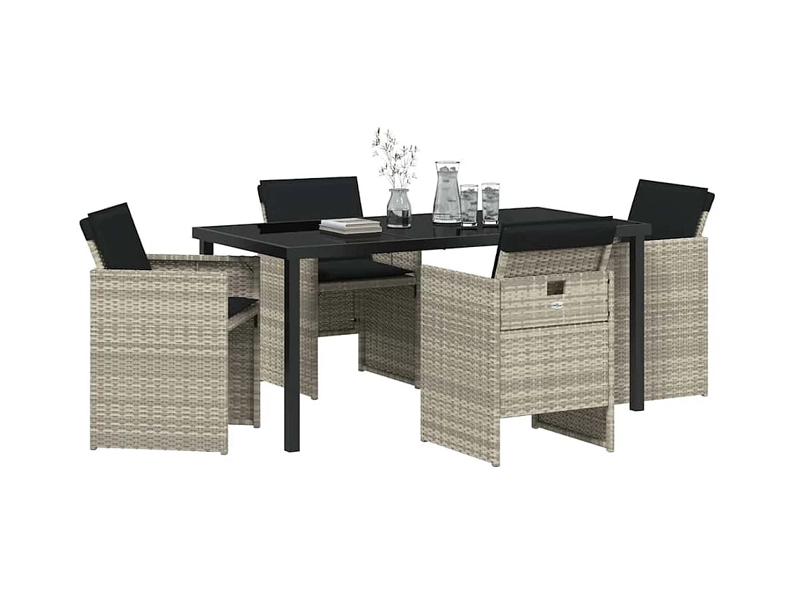 Set da pranzo da giardino 5 pezzi con cuscini grigio chiaro in polyrattan