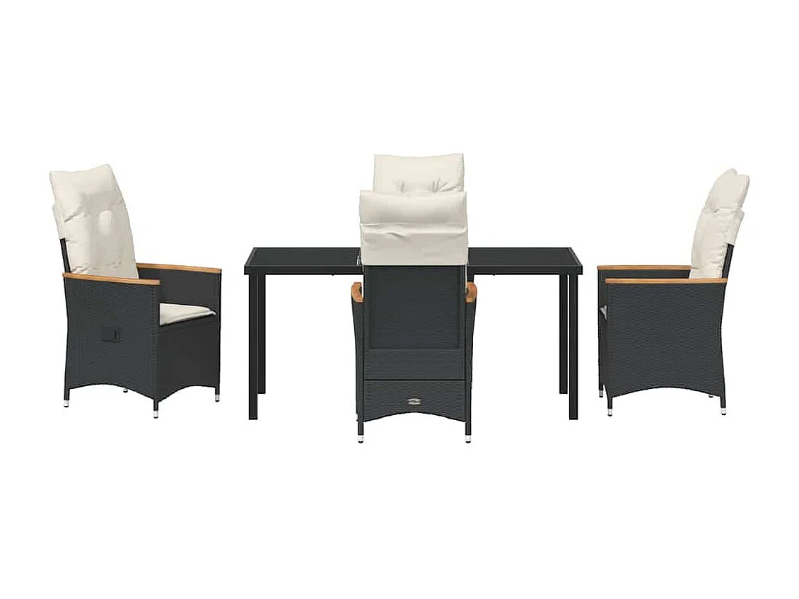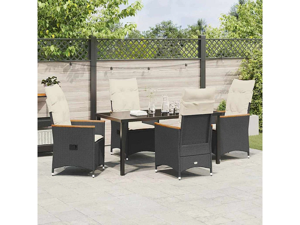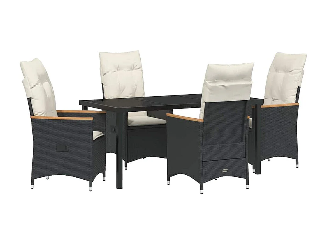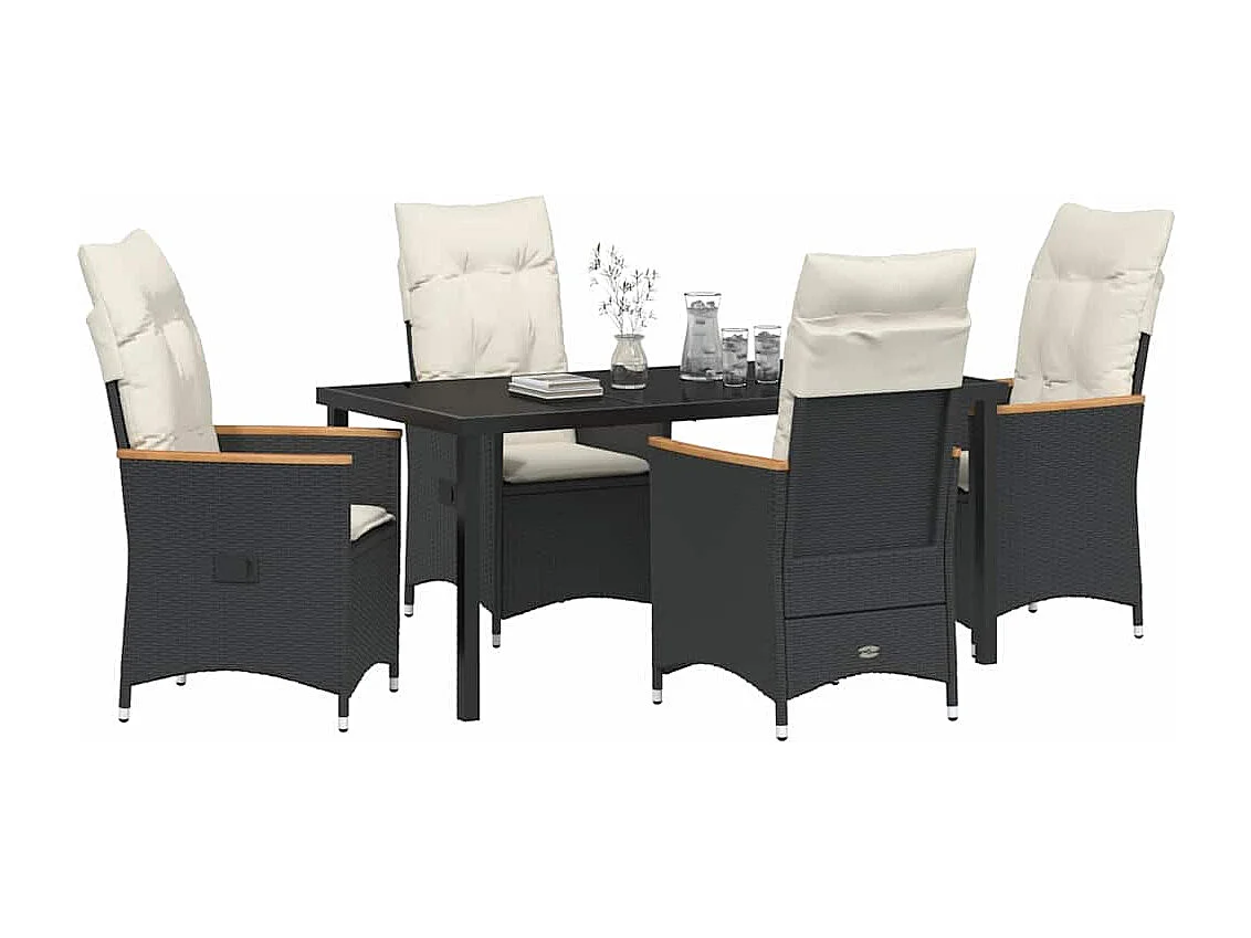Set da pranzo da giardino da 5 pezzi con cuscini in rattan di poliestere nero