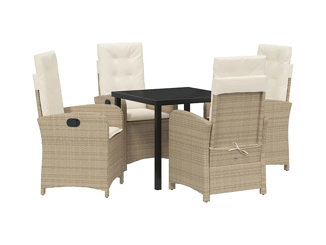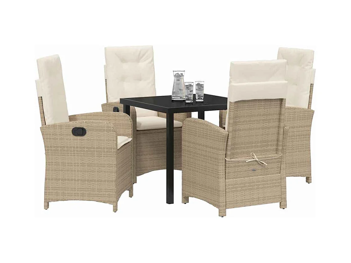 Set da pranzo da giardino da 5 pezzi con cuscini in polyrattan beige