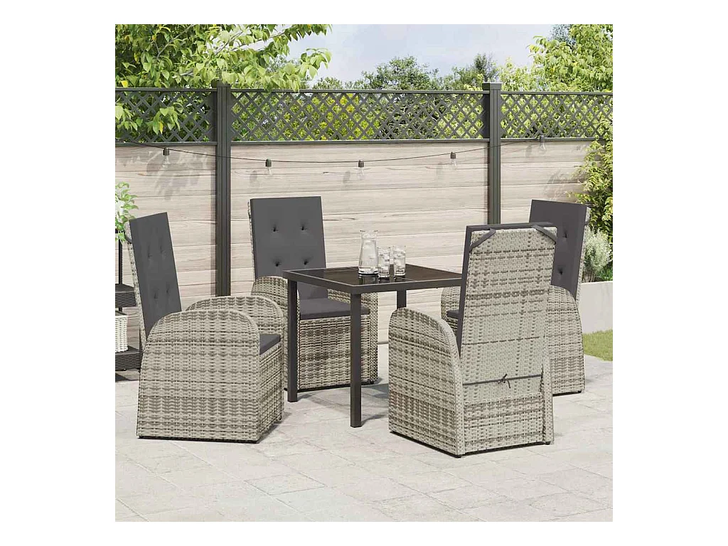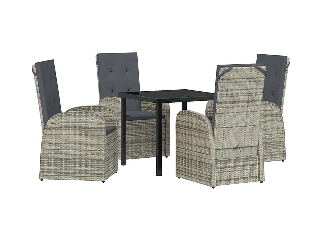 Set da pranzo da giardino 5 pezzi con cuscini in polyrattan grigio