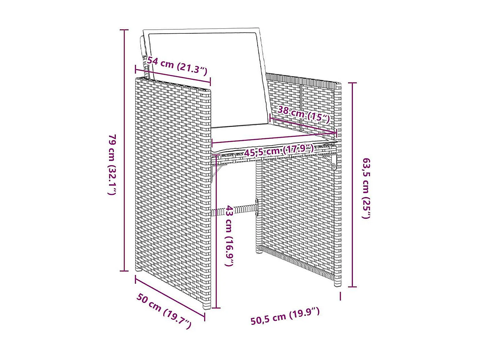 Set da pranzo da giardino 5 pezzi con cuscini in rattan grigio poly