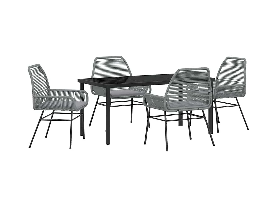 Set da pranzo da giardino 5 pezzi con cuscini in polyrattan grigio