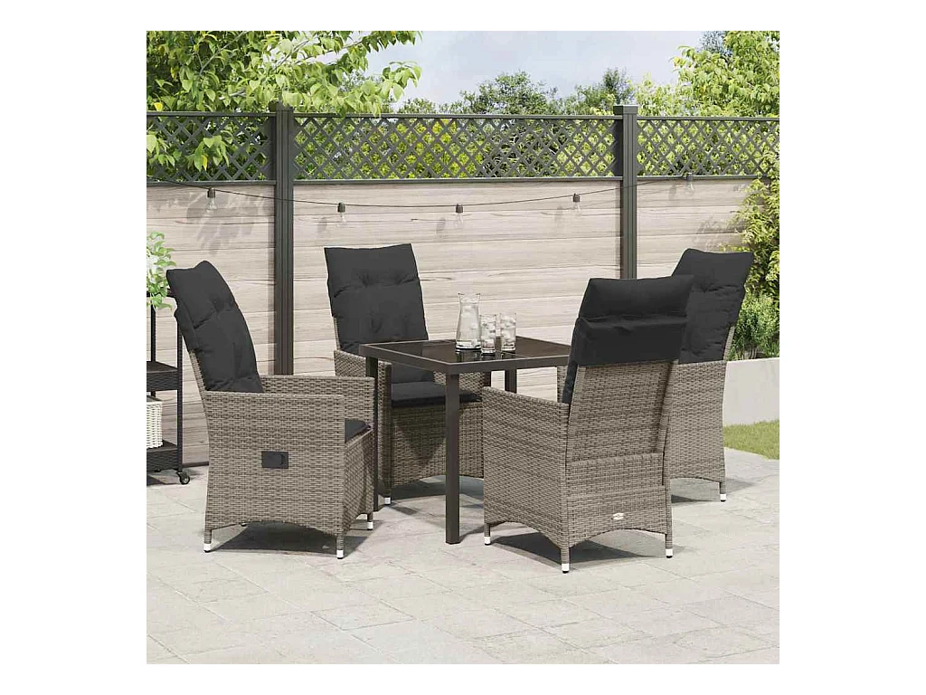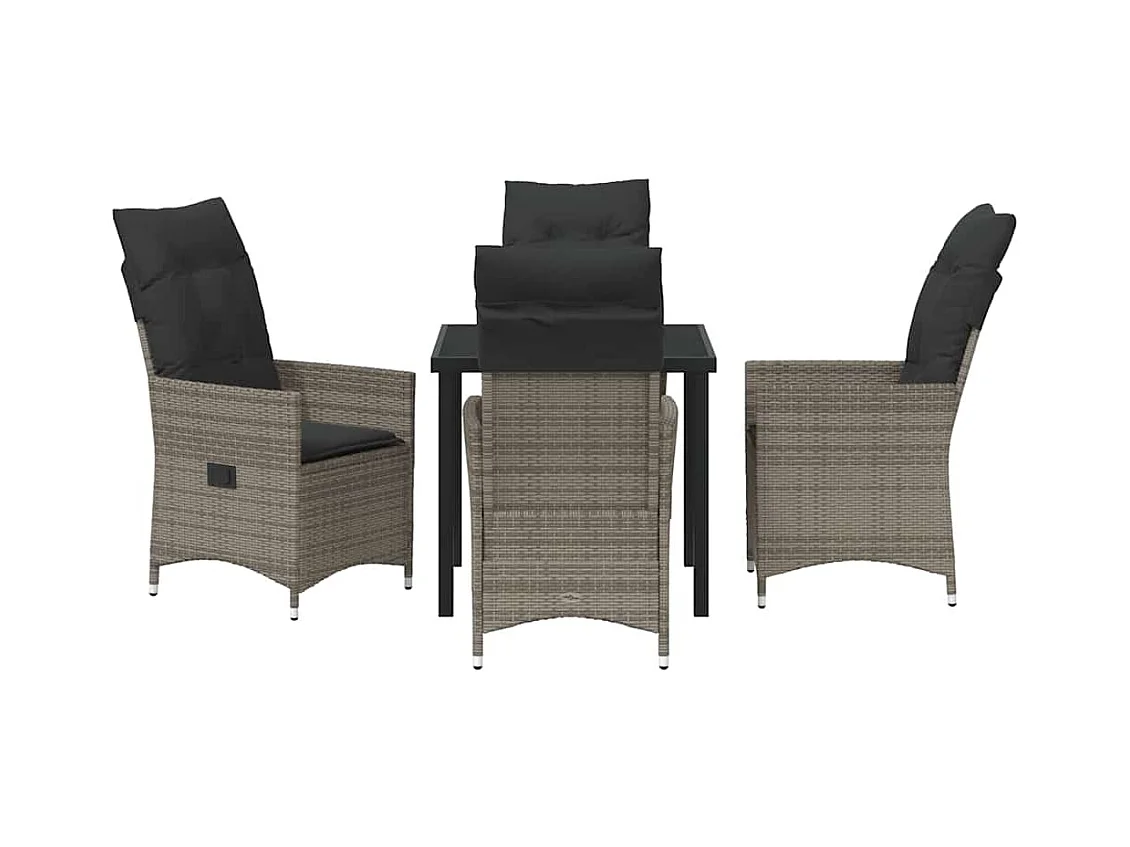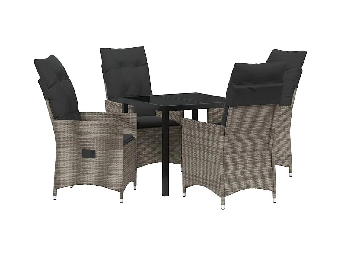 Set da pranzo da giardino 5 pezzi con cuscini in polyrattan grigio