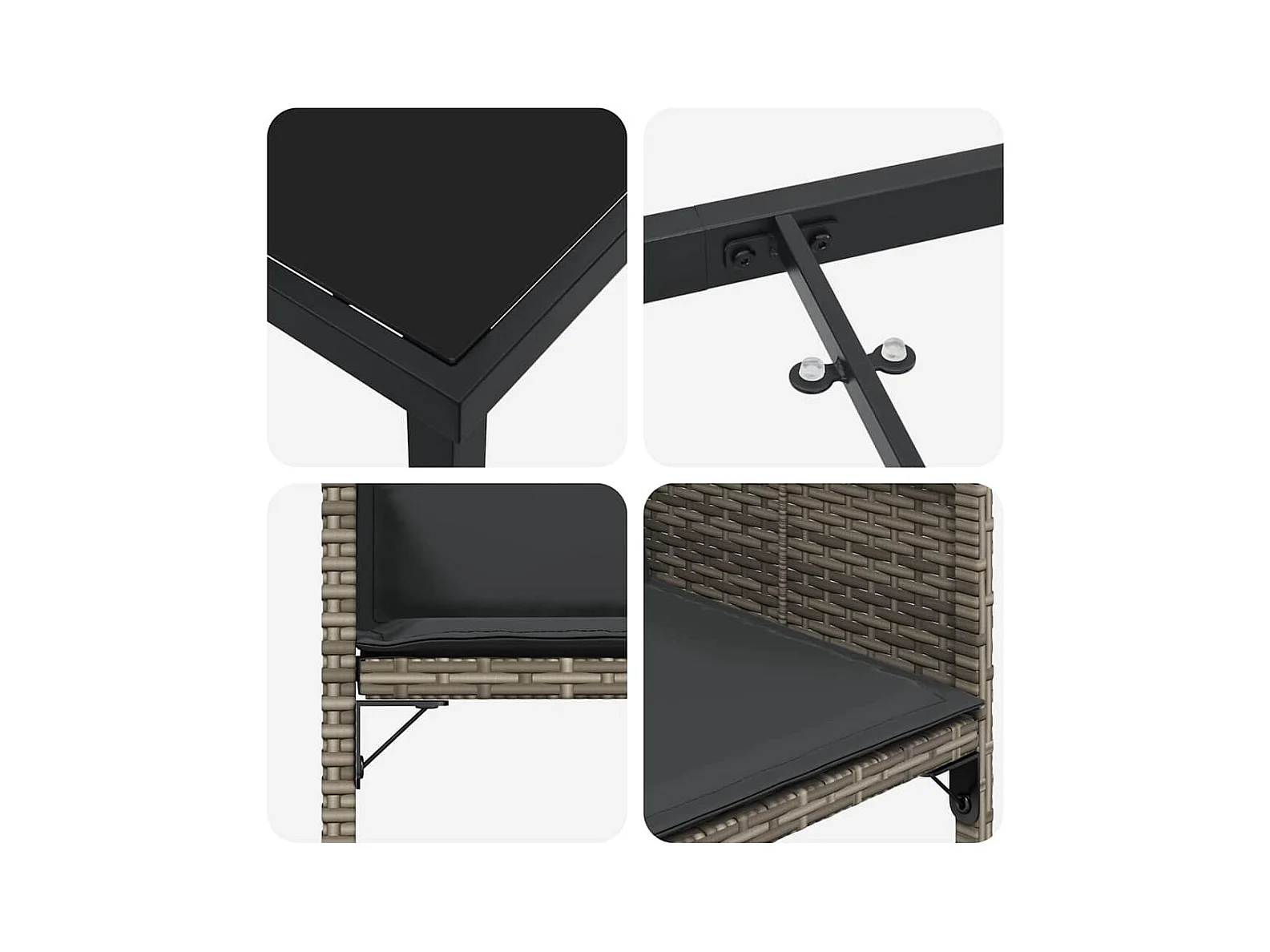 Set da pranzo da giardino 5 pezzi con cuscini in polyrattan grigio