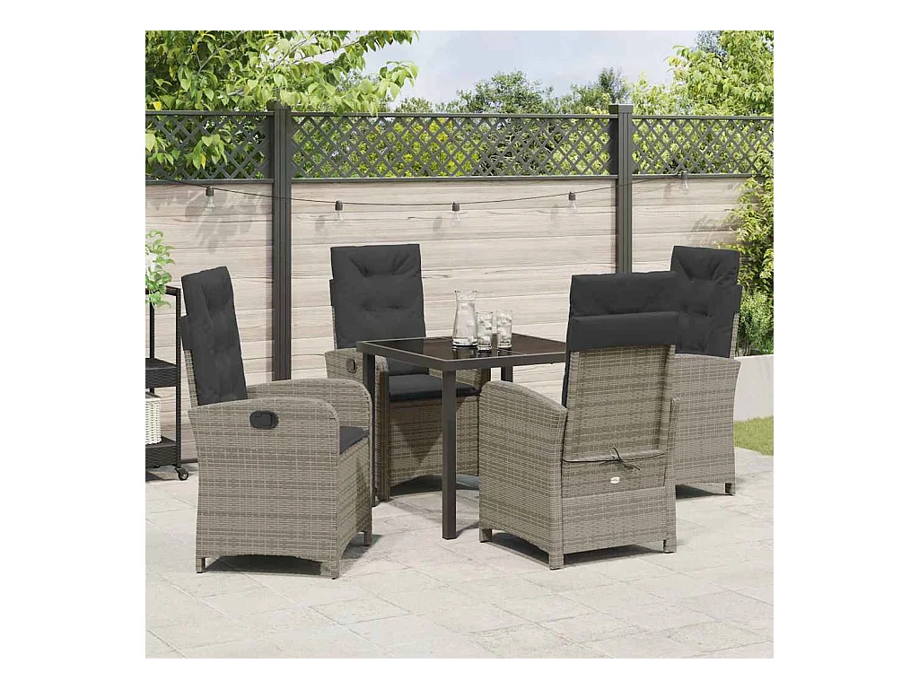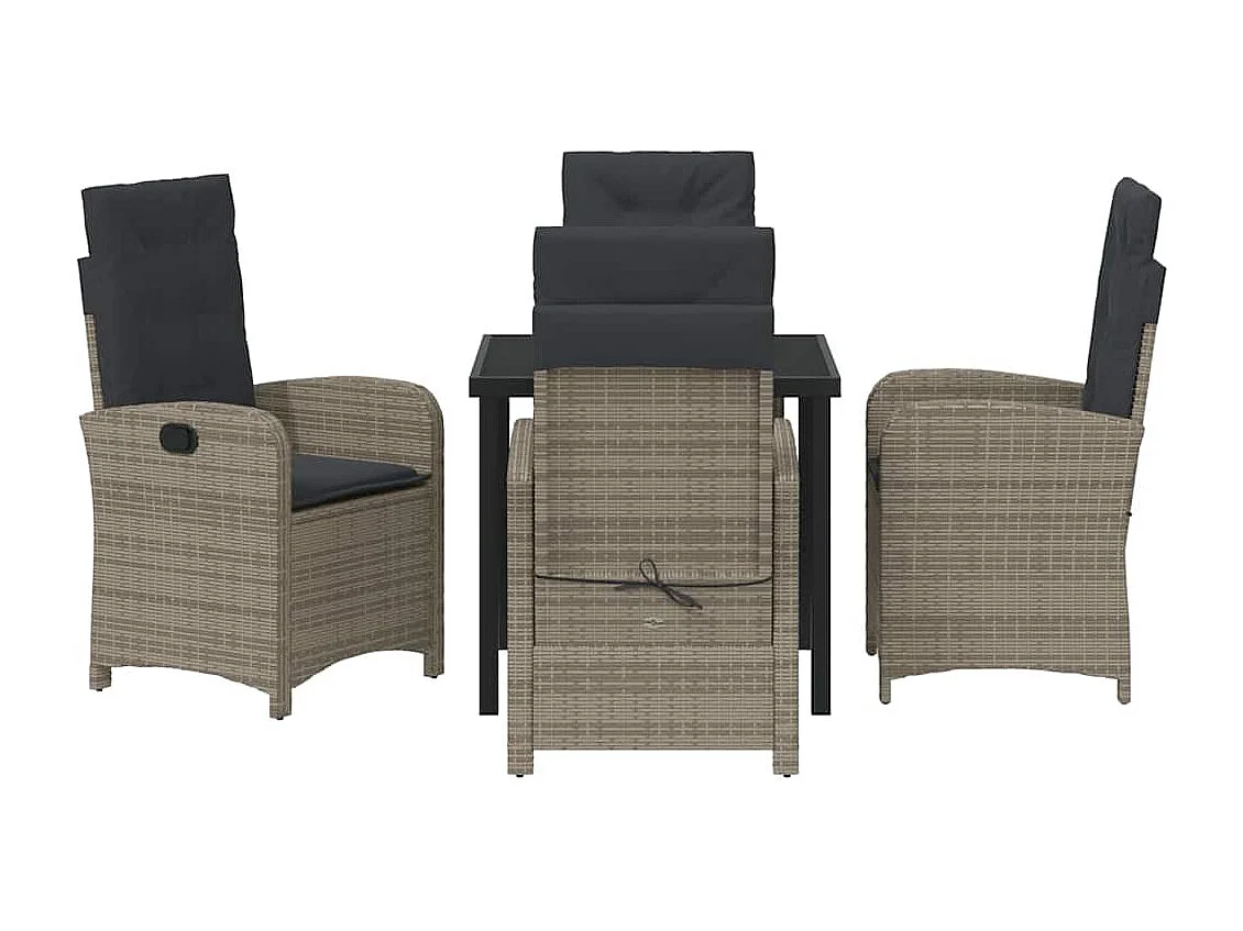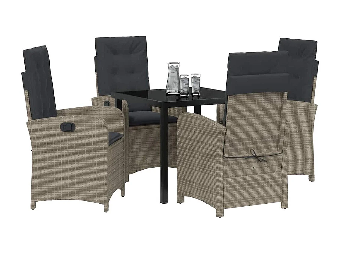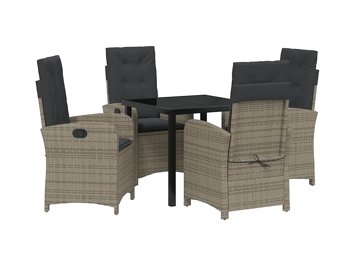 Set da pranzo da giardino 5 pezzi con cuscini grigi in polyrattan