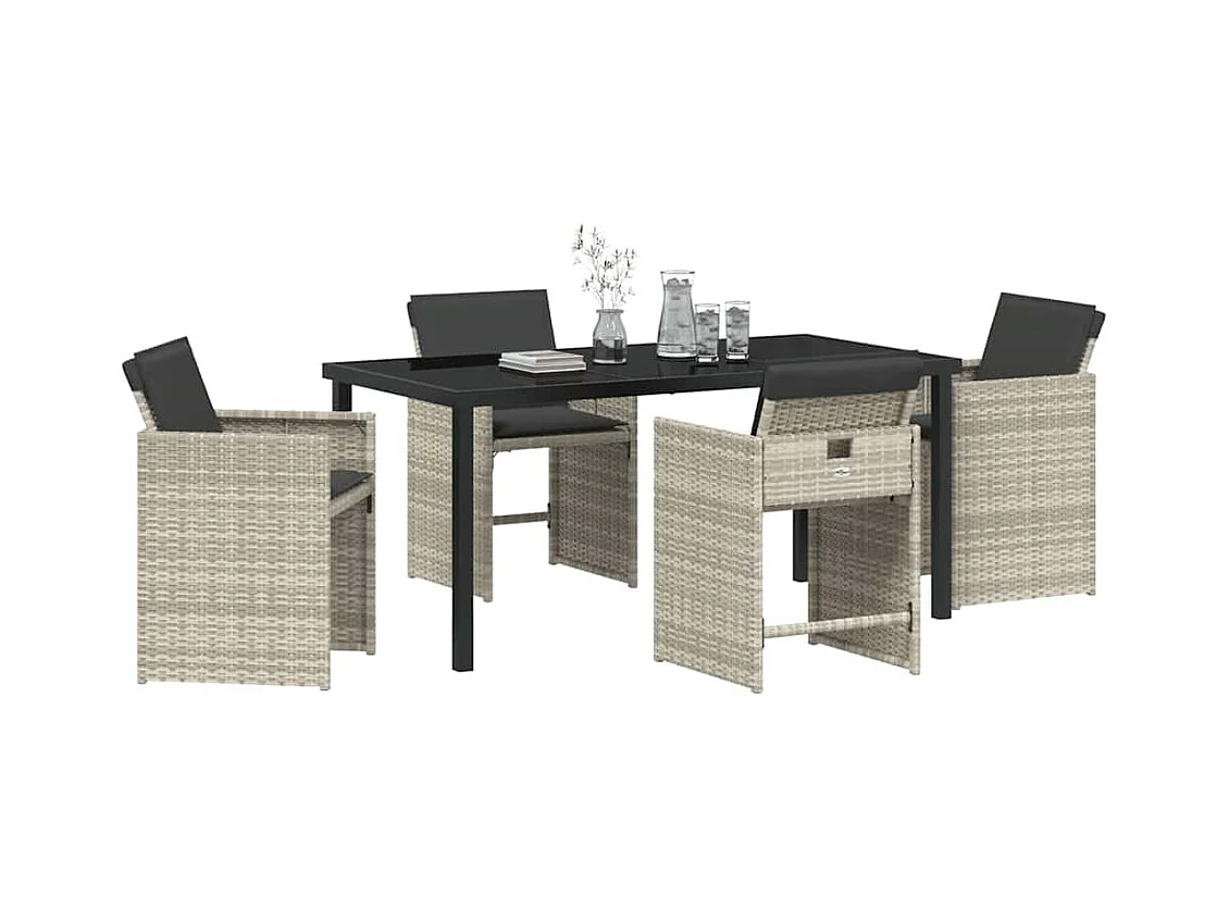 Set da pranzo da giardino 5 pezzi con cuscini in polyrattan grigio chiaro
