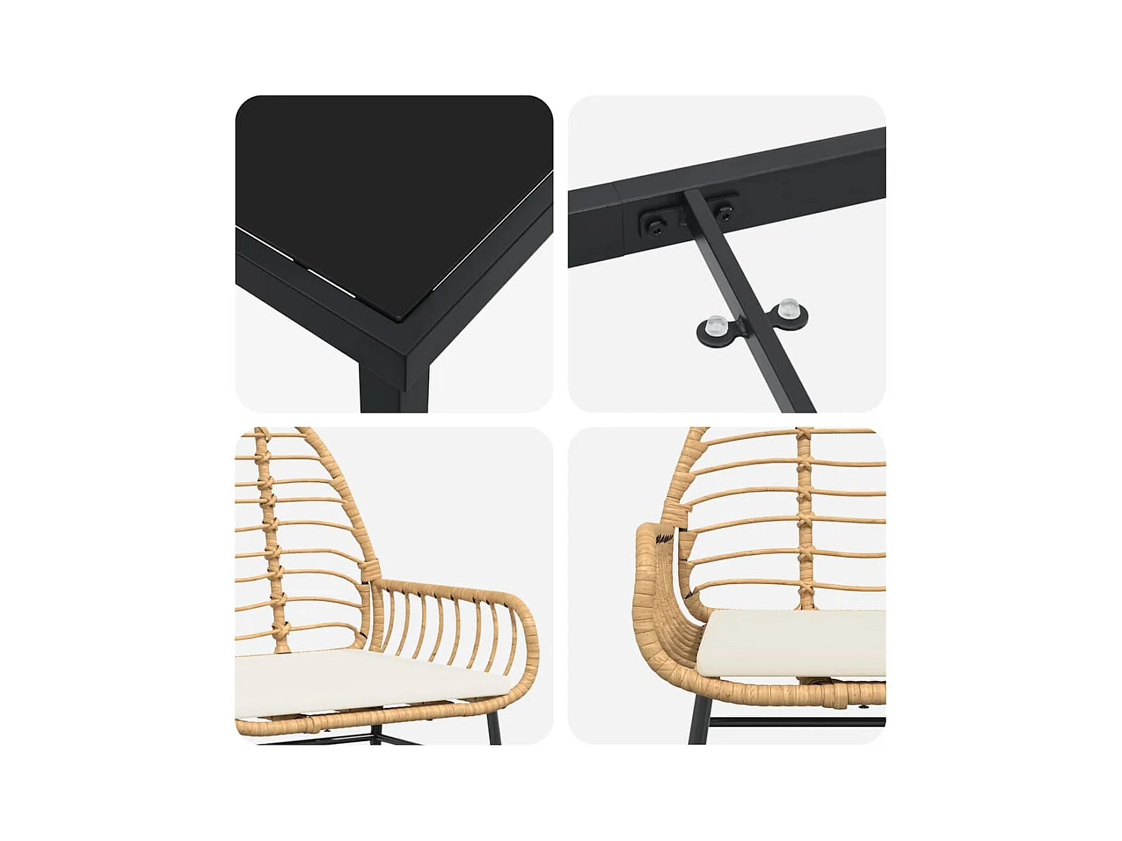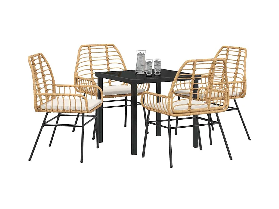 Set da pranzo da giardino 5 pezzi con cuscini in polyrattan marrone