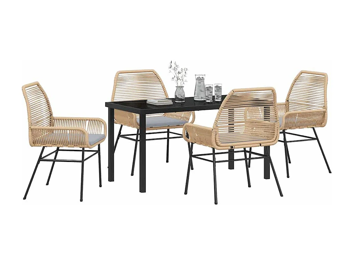 Set da pranzo da giardino 5 pezzi - Polyrattan marrone