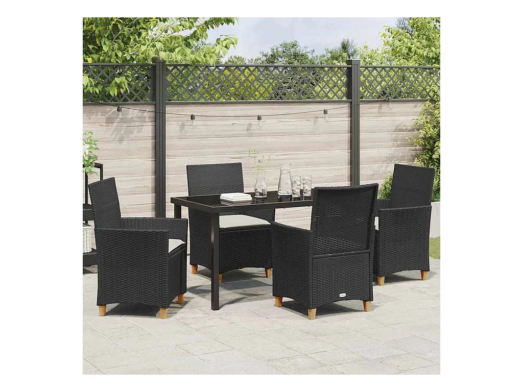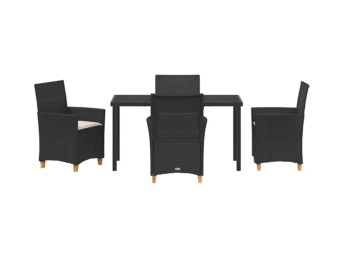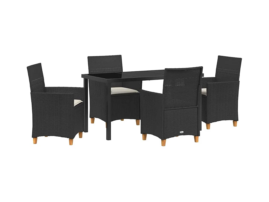 Set da pranzo da giardino 5 pezzi con cuscini in polyrattan nero