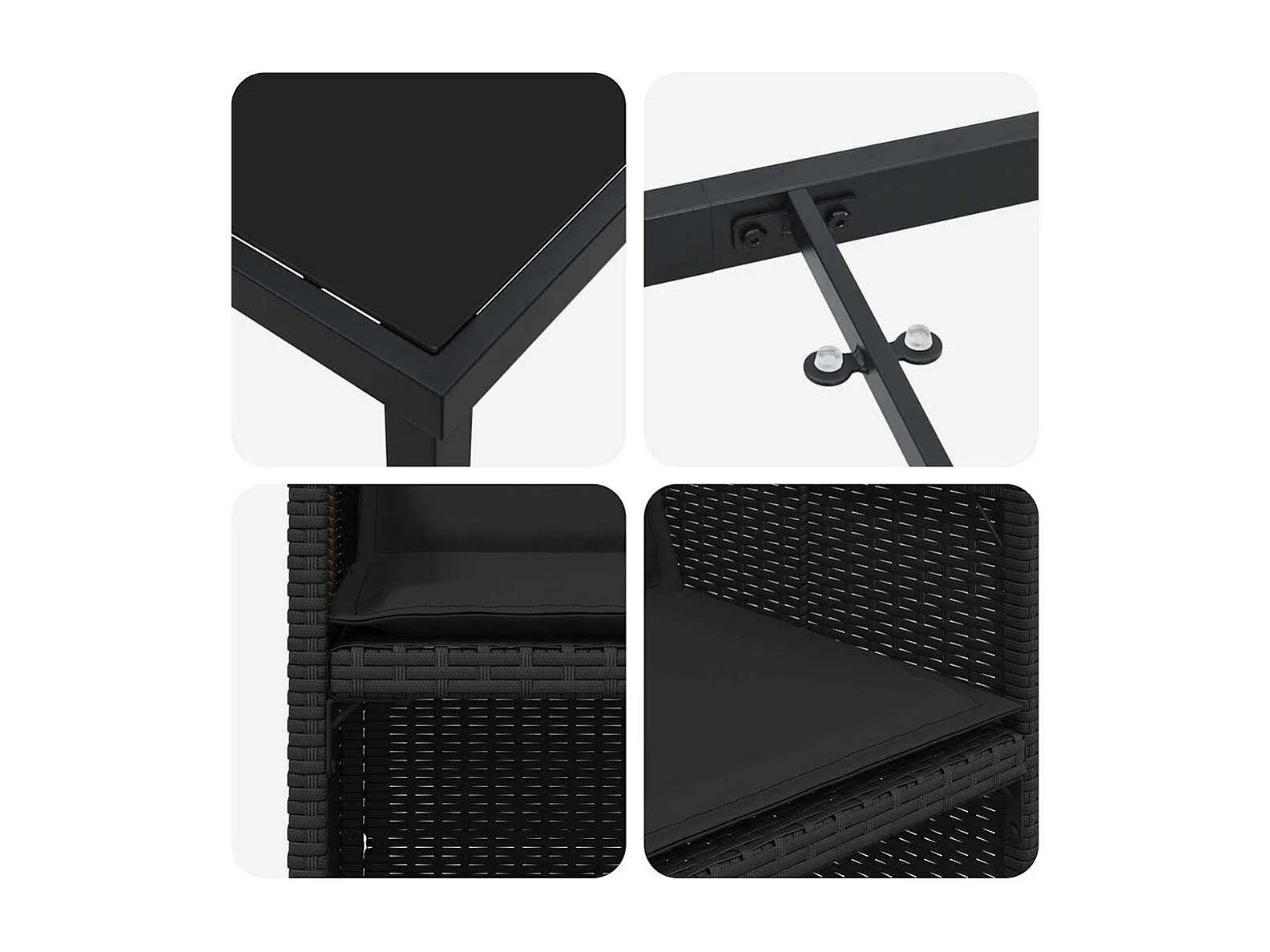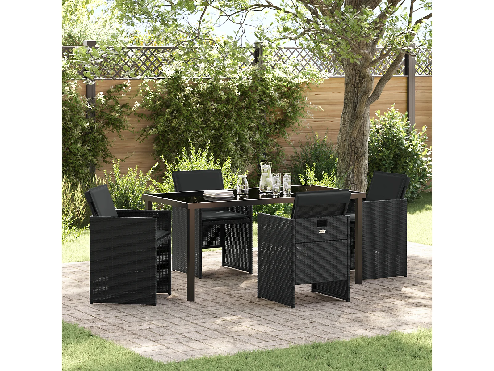 Set da pranzo da giardino 5 pezzi con cuscini in resina nera e vimini