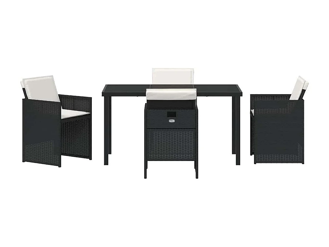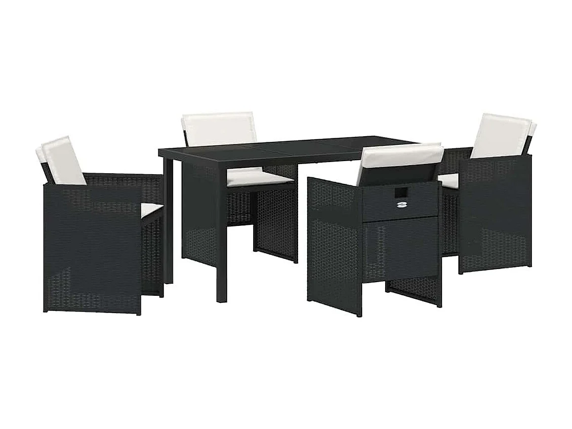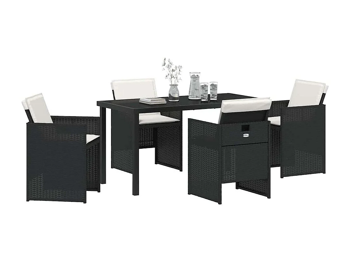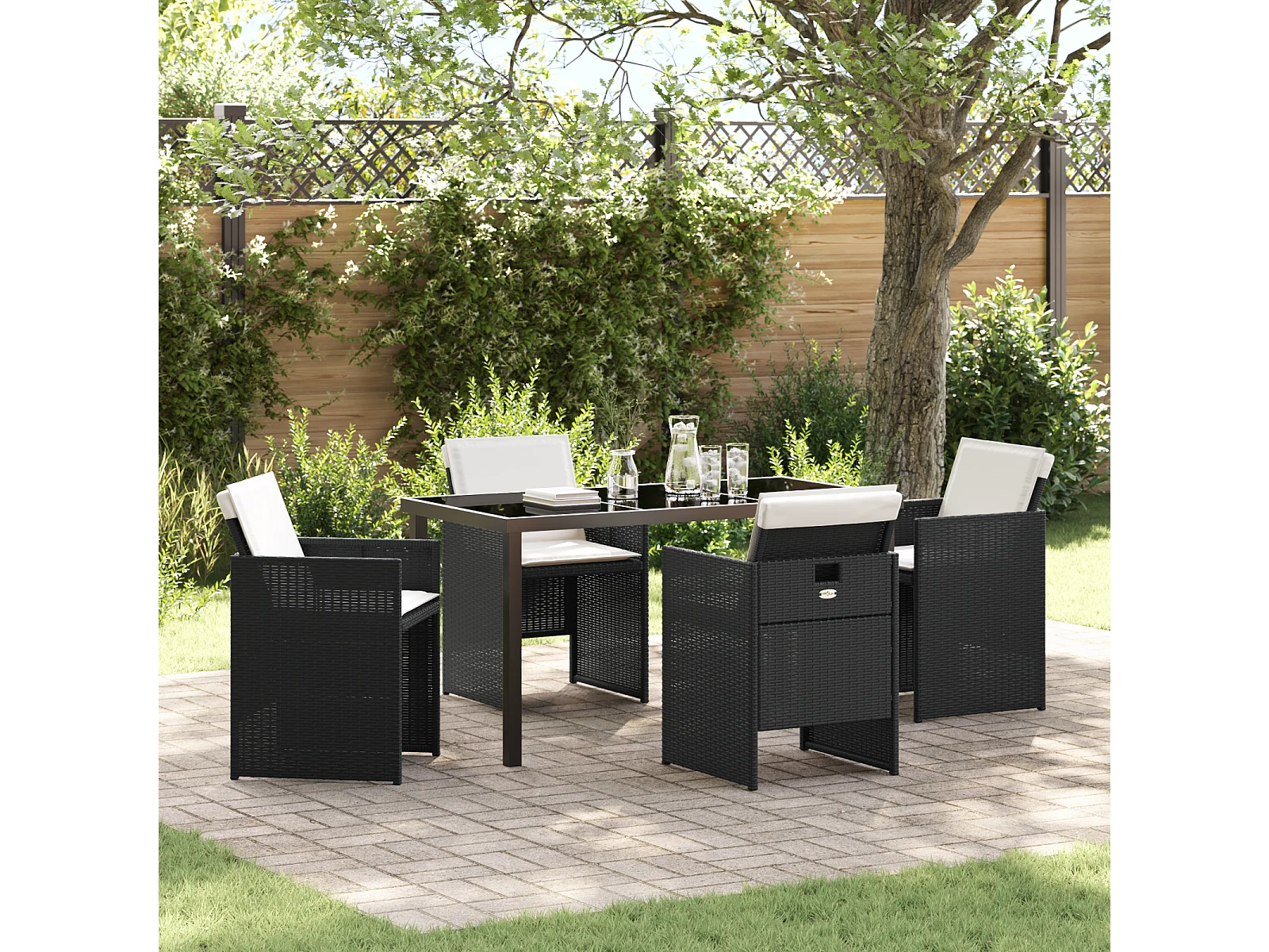 Set da pranzo da giardino da 5 pezzi con cuscini in rattan di poliestere nero