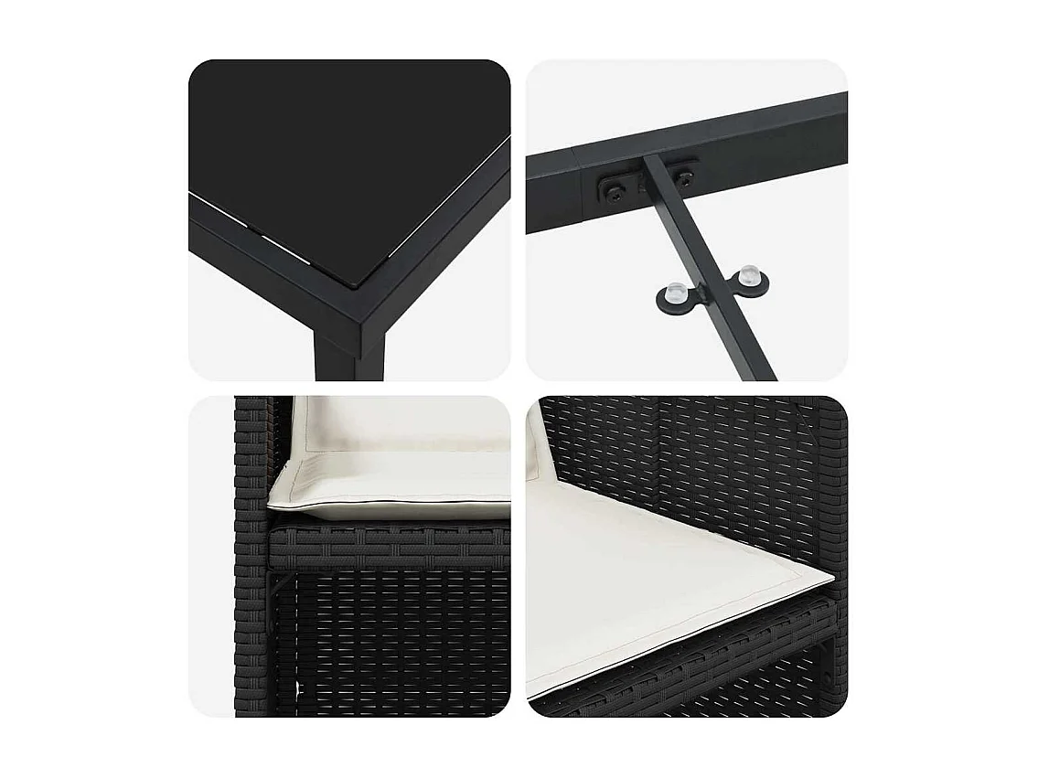 Set da pranzo da giardino 5 pezzi con cuscini in resina nera e vimini