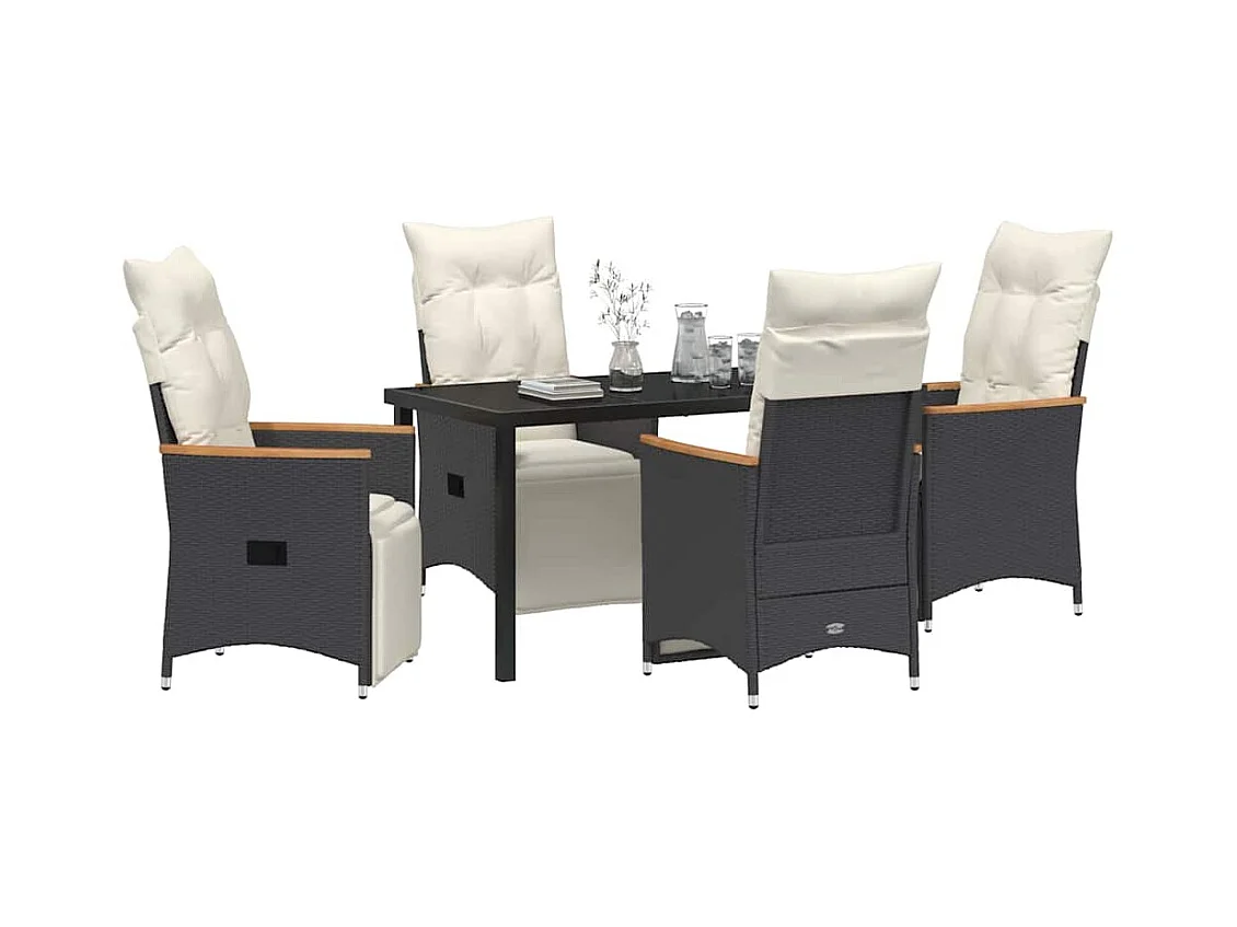 Set da pranzo da giardino 5 pezzi con cuscini in rattan nero lucido