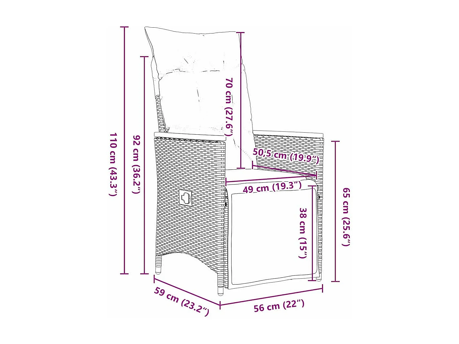 Set da pranzo da giardino 5 pezzi con cuscini in resina nera e vimini