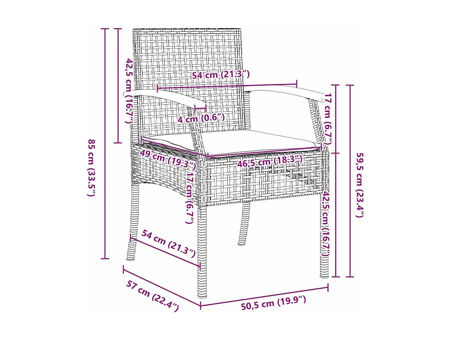 Set da pranzo da giardino 5 pezzi con cuscini in resina nera e vimini